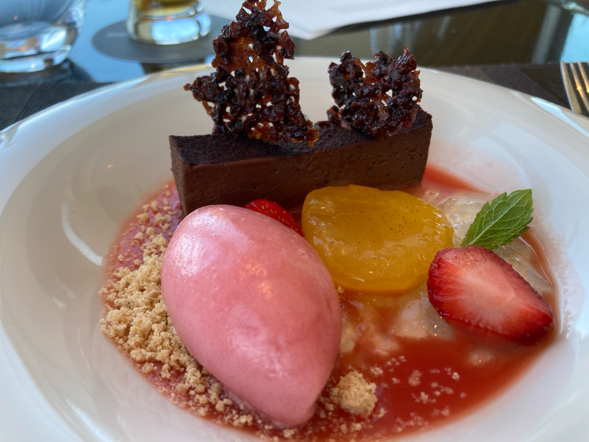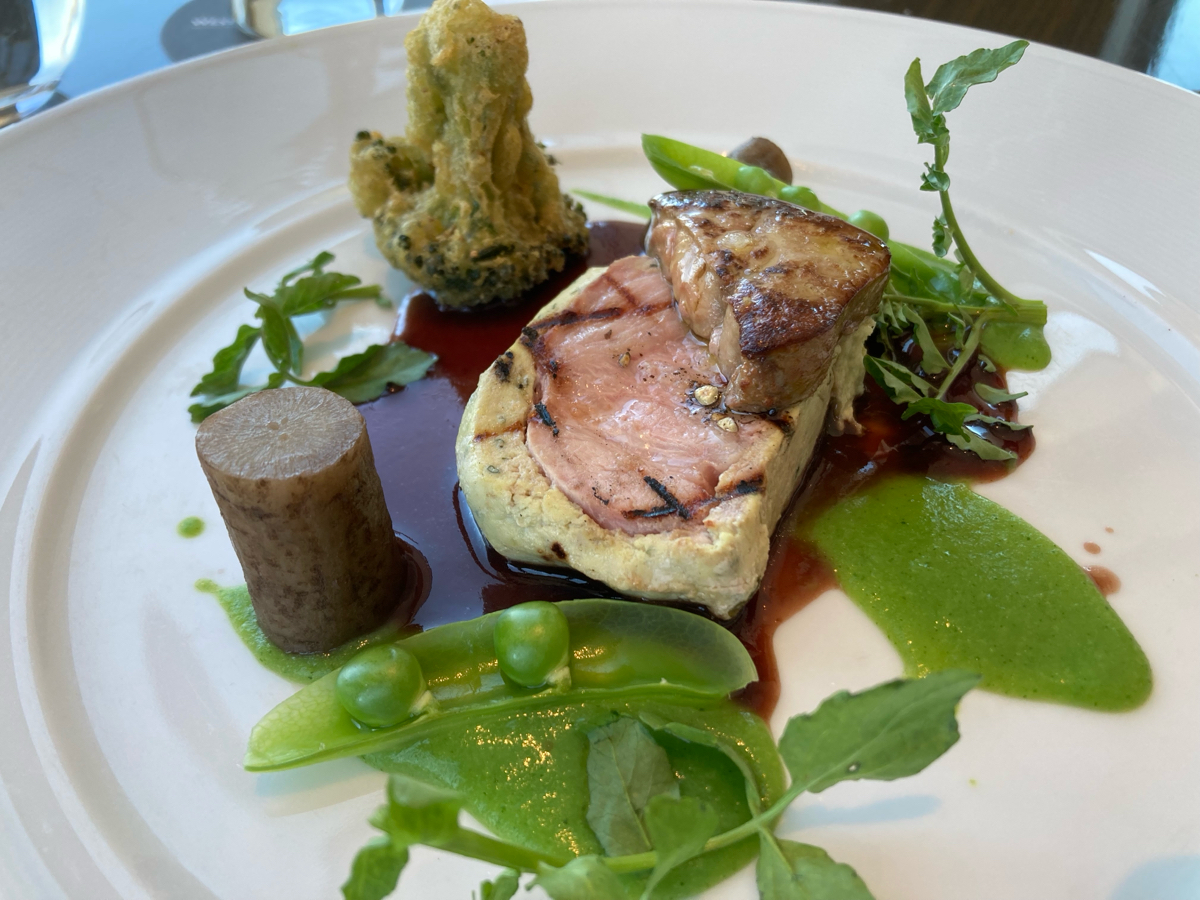 あおば通駅から少し歩いた所にそびえ立つのは東北一の高さを誇る仙台トラストタワーがあり、26階にはレストラン「シンフォニー」があります。 宿泊客以外でも利用する事が可能でランチの時間帯は天気の良い日は遠く牡鹿半島まで望む事が出来ます。 写真の料理はプリフィクスランチというサービスです フランス料理形式で前菜、スープ、メイン料理(一品と二品から選択可) 追加料金でメイン料理の内容を変えて貰う事も出来るので魚料理と肉料理をそれぞれ変更、更に追加でフォアグラも追加してもらいました。 どの料理も厳選された地産地消に拘った食材が使われており丁寧に作られているので見た目も楽しませてくれます。 食事にかかる時間は約1時間半から2時間くらいなのでその後に予定を組まれている方は余裕を持った時間帯に予定を予め組んだ方が良いですね。 絶景からの食事を楽しんでみたい方は是非ともオススメです。