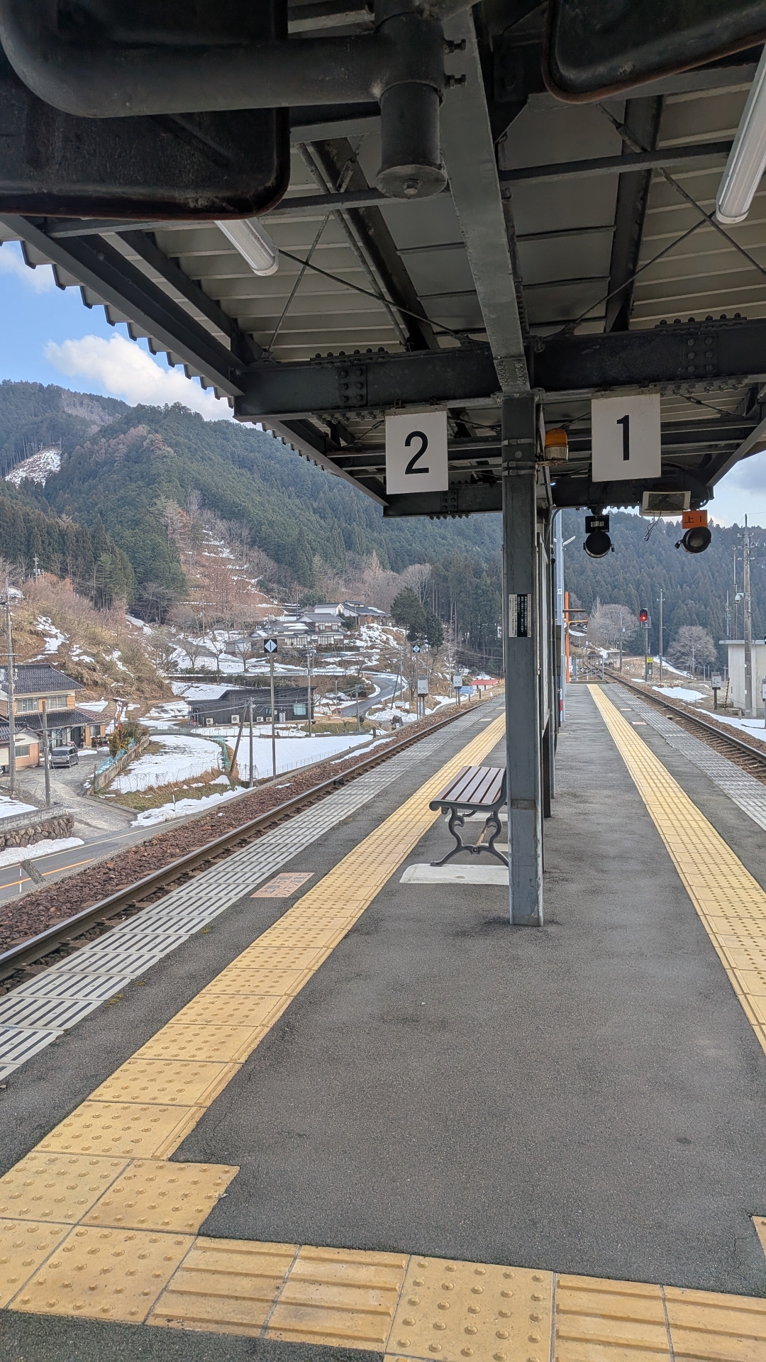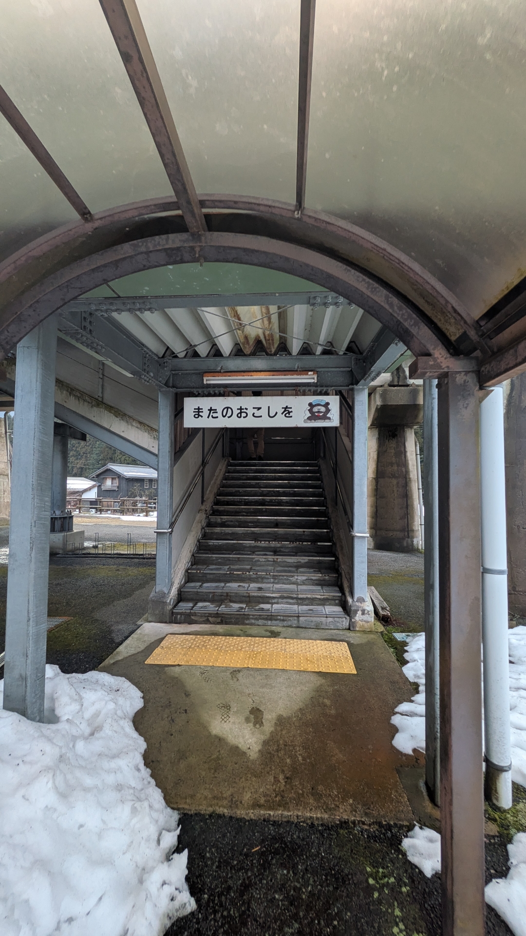 階段を登って上にある駅 2車線あり、すれ違いができる駅だった。 駅舎が豪華であり、虫の標本が多くあった、蜂や蝶が好きなひとはぜひ行ってみて欲しい。それにつられてか、カメムシが1匹住み着いていたのでお気をつけて