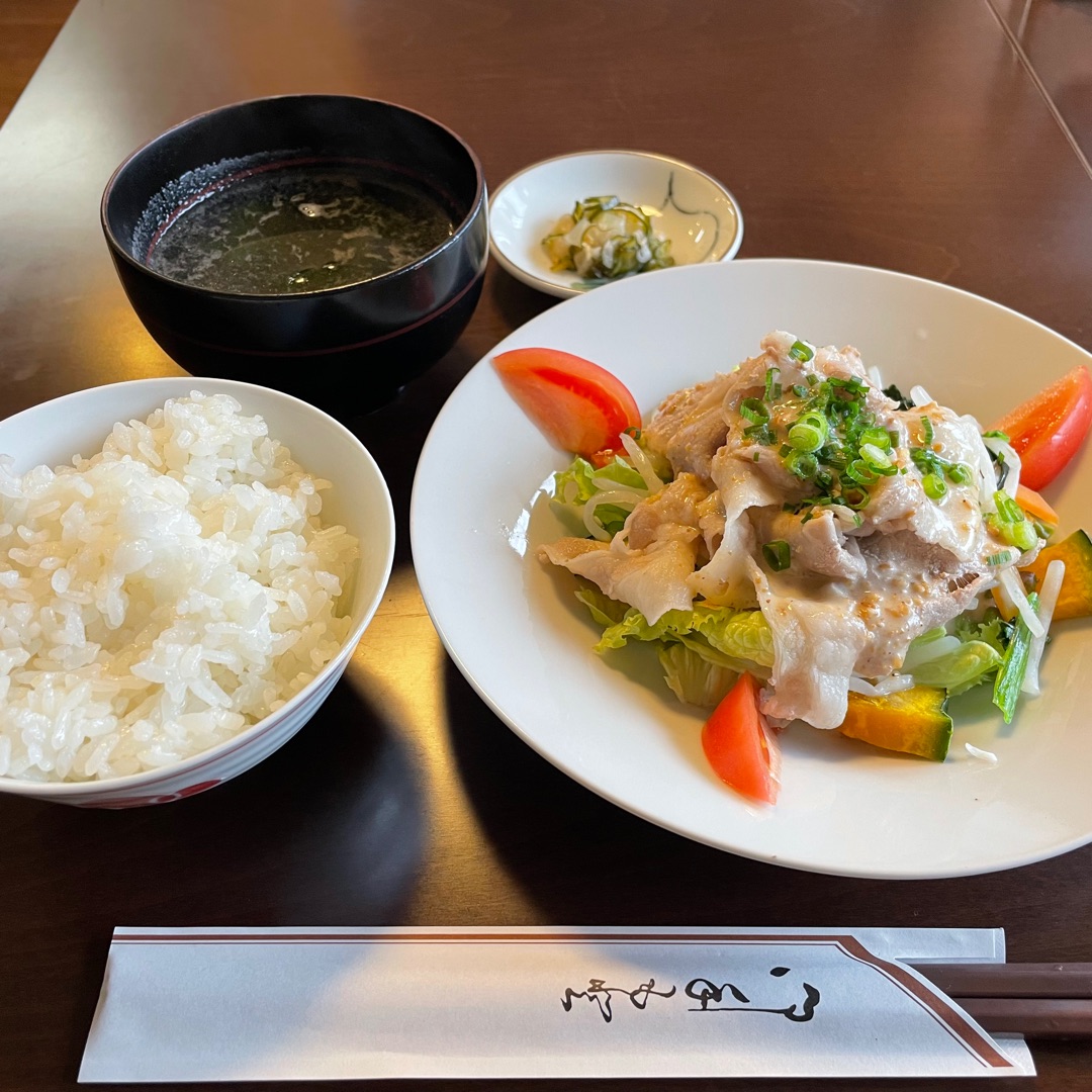 きょうは豚しゃぶサラダでした。ランチと一緒に頼むと飲み物は半額になります。