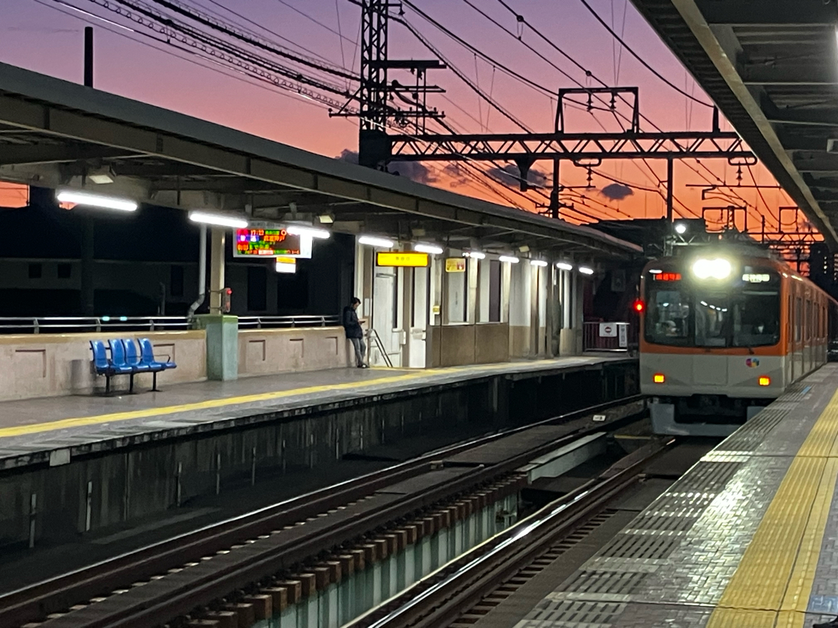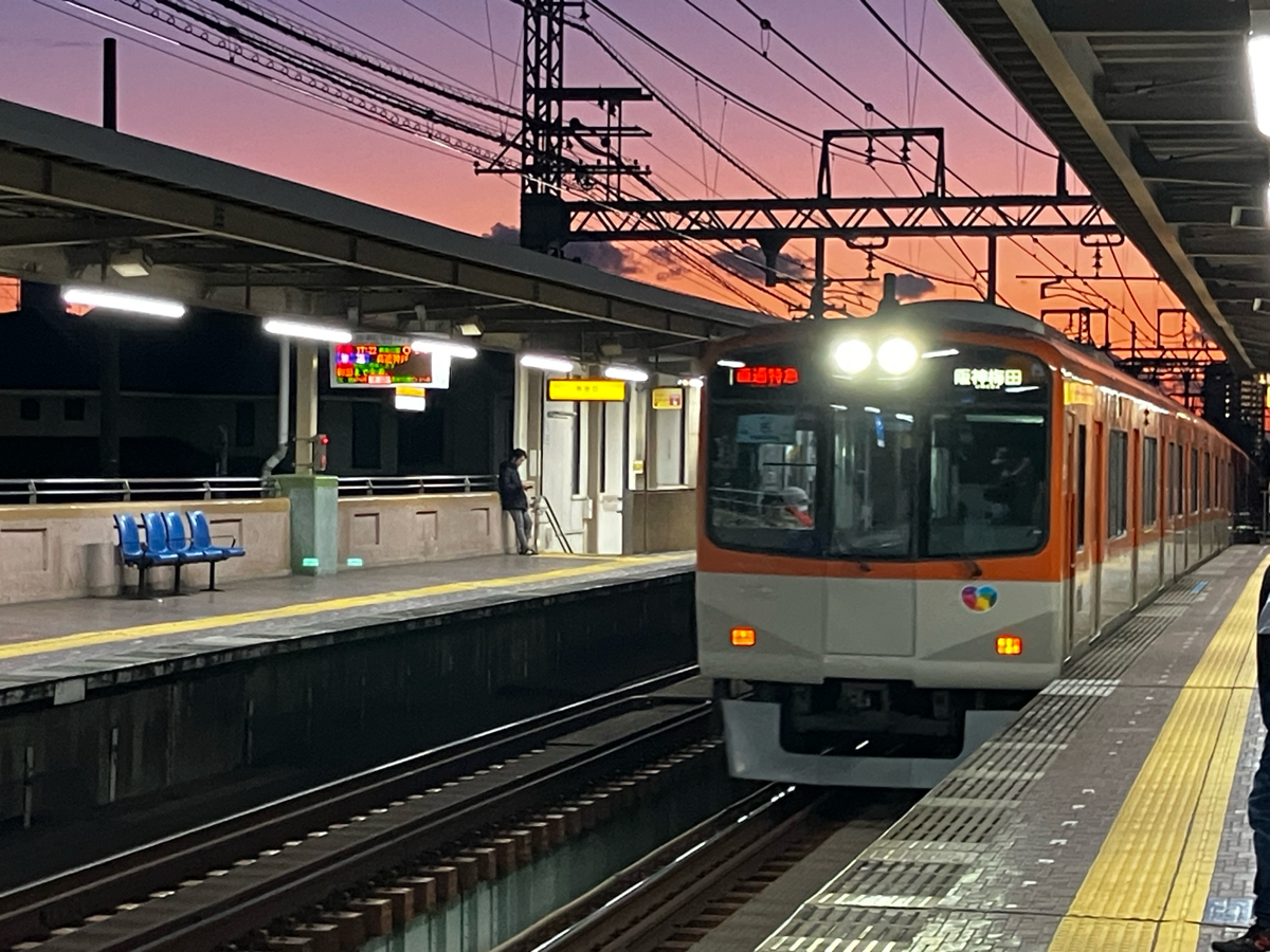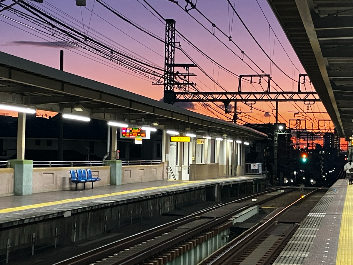 阪神芦屋駅から神戸方面を臨むと、空が美しいグラデーションになっていました。😀