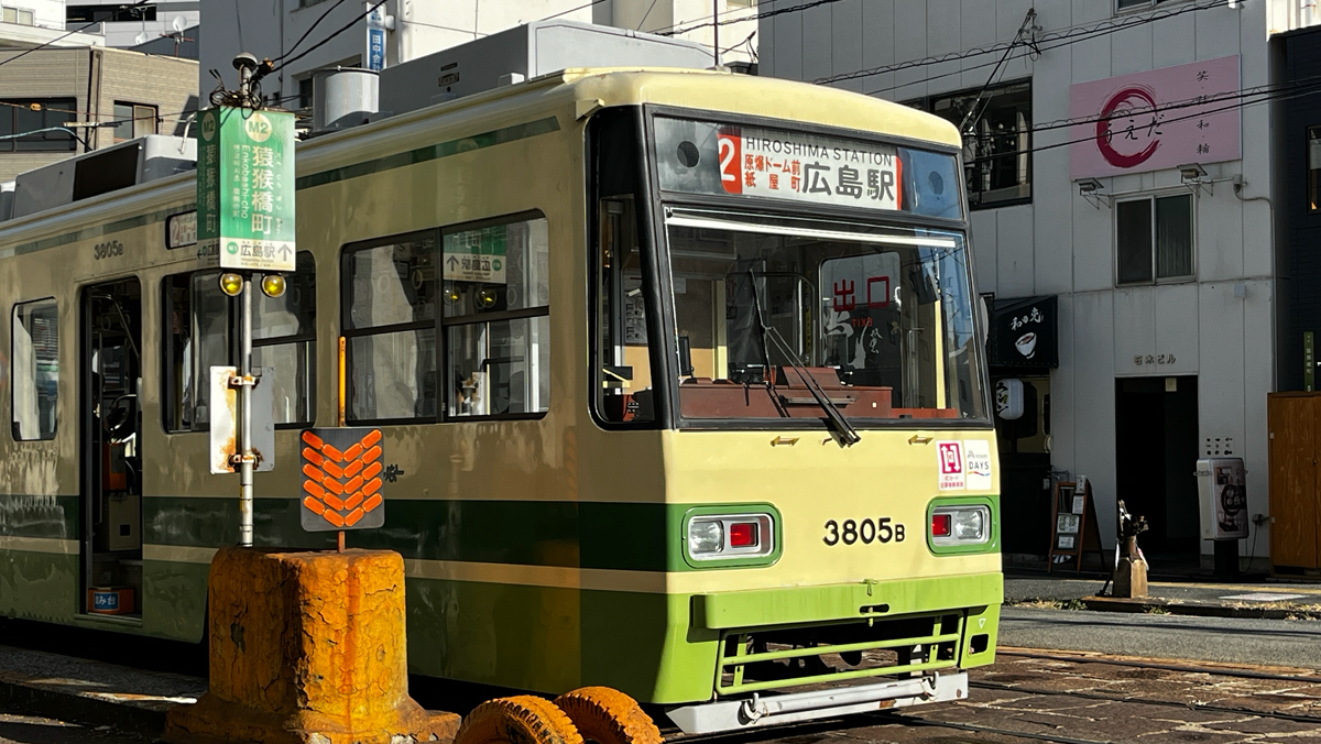 電停近くに残る被爆の跡、平和の象徴ですね。