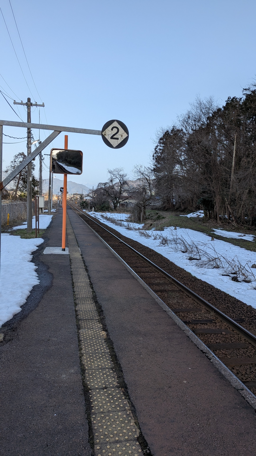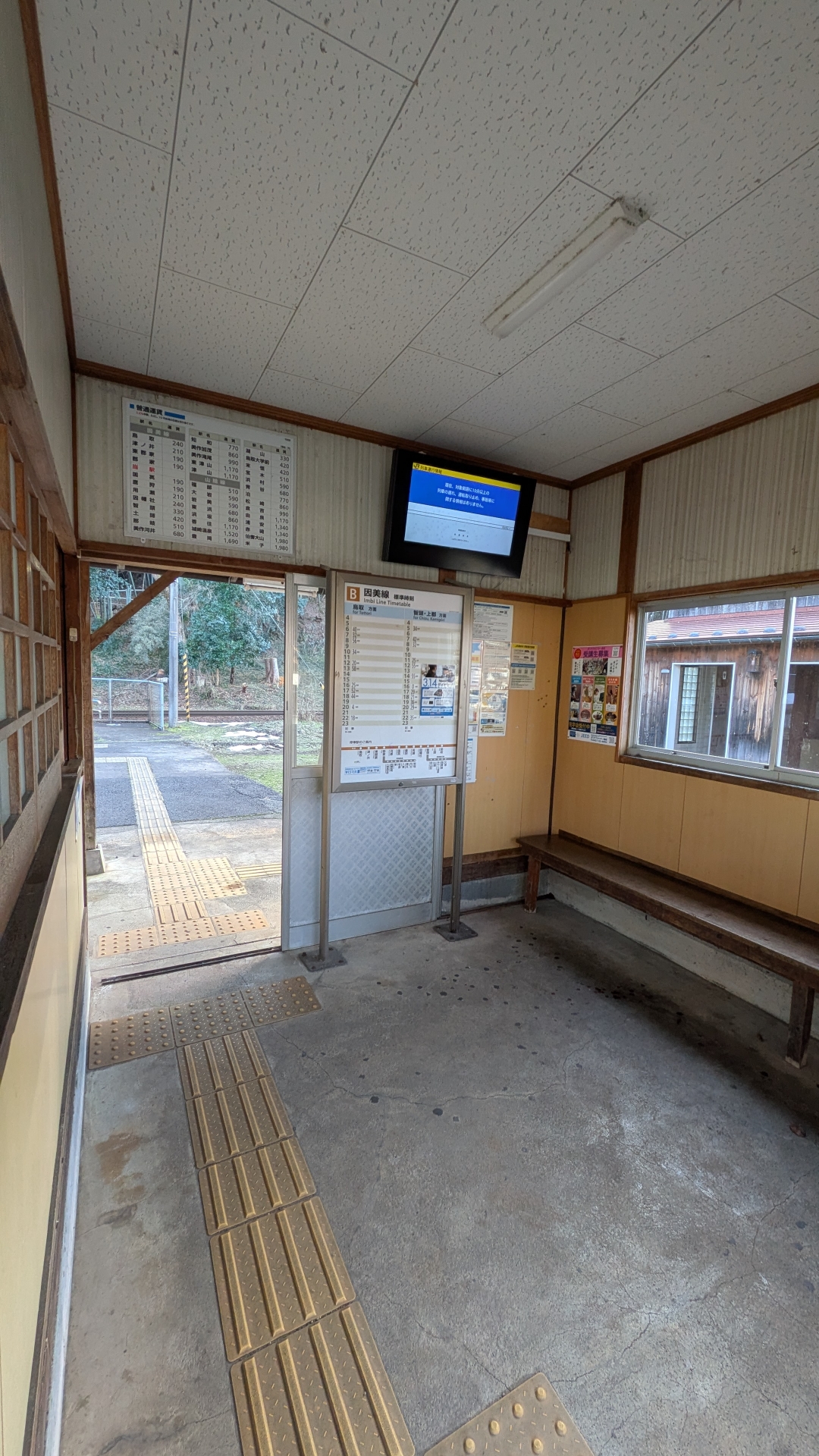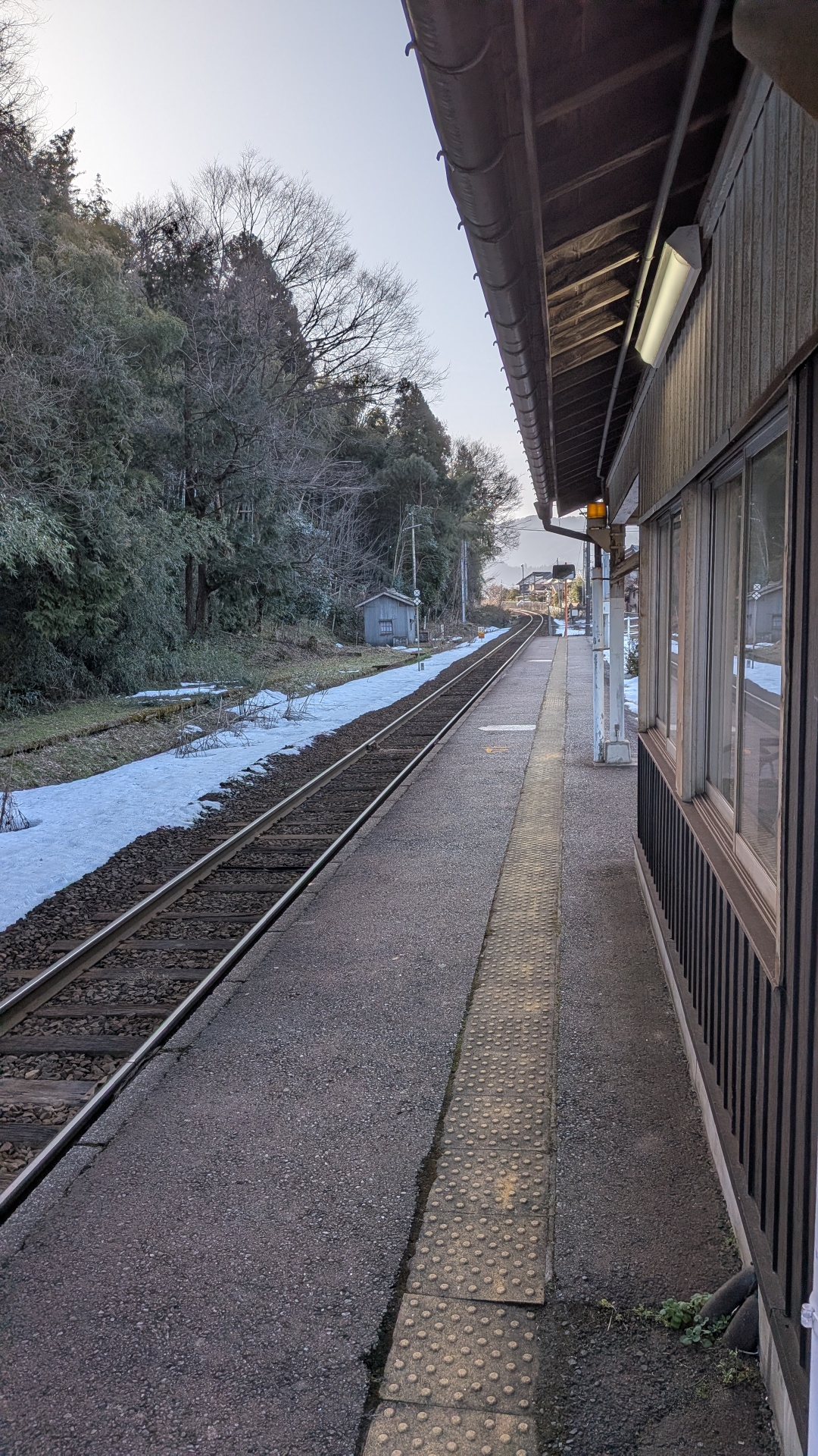 こじんまりとした駅。 駅舎は狭く、隙間風が入り肌寒かった。 線路が近く、あまり手入れがされてい無そうな感じ。 列車が通った時は、近くて車体がよく見えることだろう。