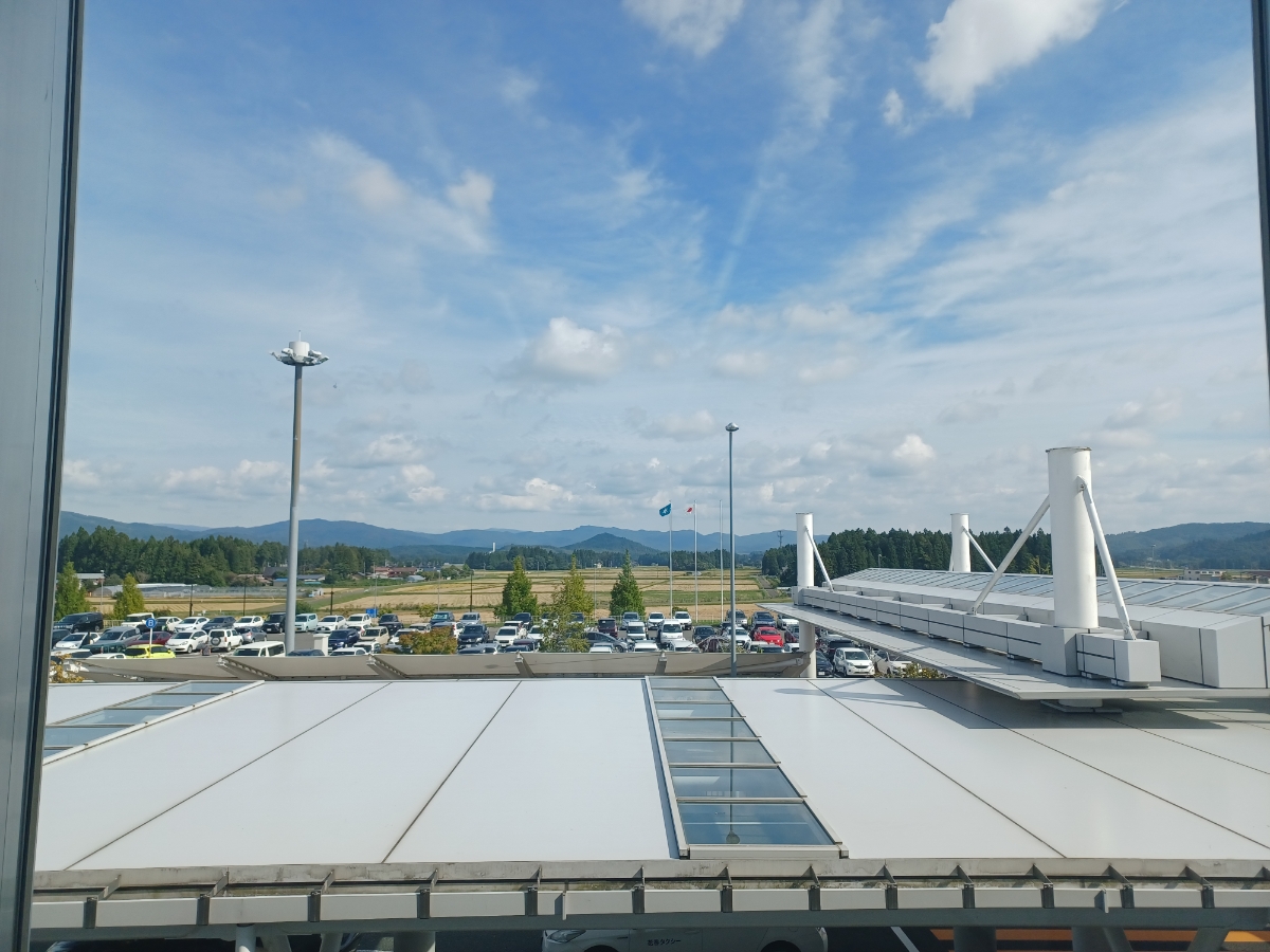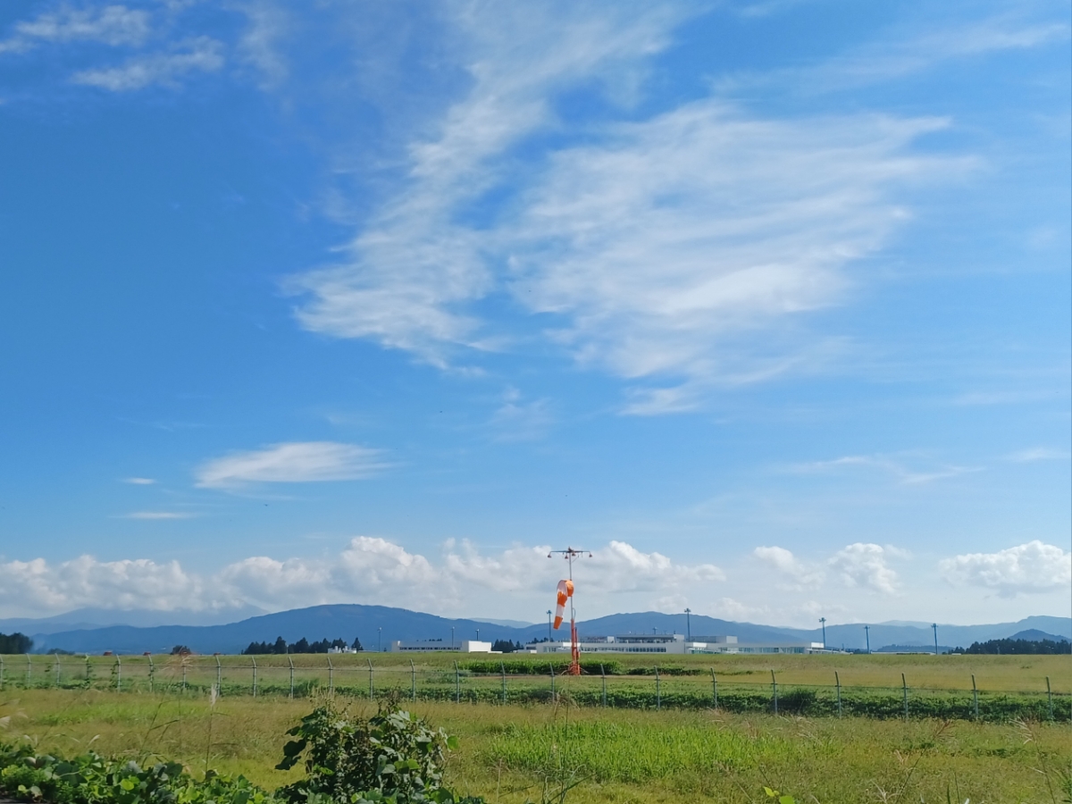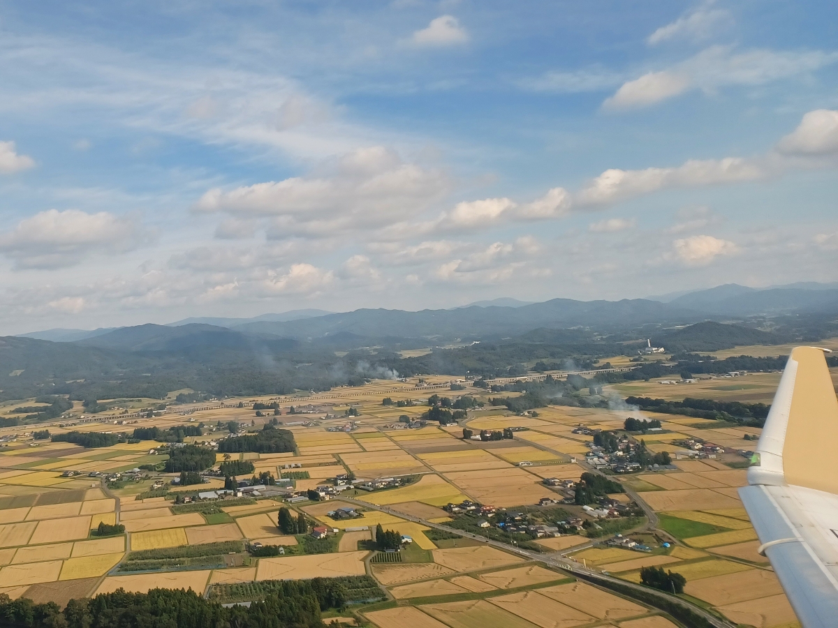 『いわて花巻空港』 いわて花巻空港は、田畑に囲まれた地方空港です。 この空港には、ユーミンこと松任谷由実さんが作ったイメージソング『緑の町に舞い降りて』があります。 歌のイメージ通り、夏には青々とした田畑が眼下に広がり、まるで草原の中に降り立つような感覚になります。 秋には大地が、輝く黄金色に変化し四季の移り変わりを楽しむことができます。 JR花巻空港駅からは、少し距離があるので車での移動をおすすめします。