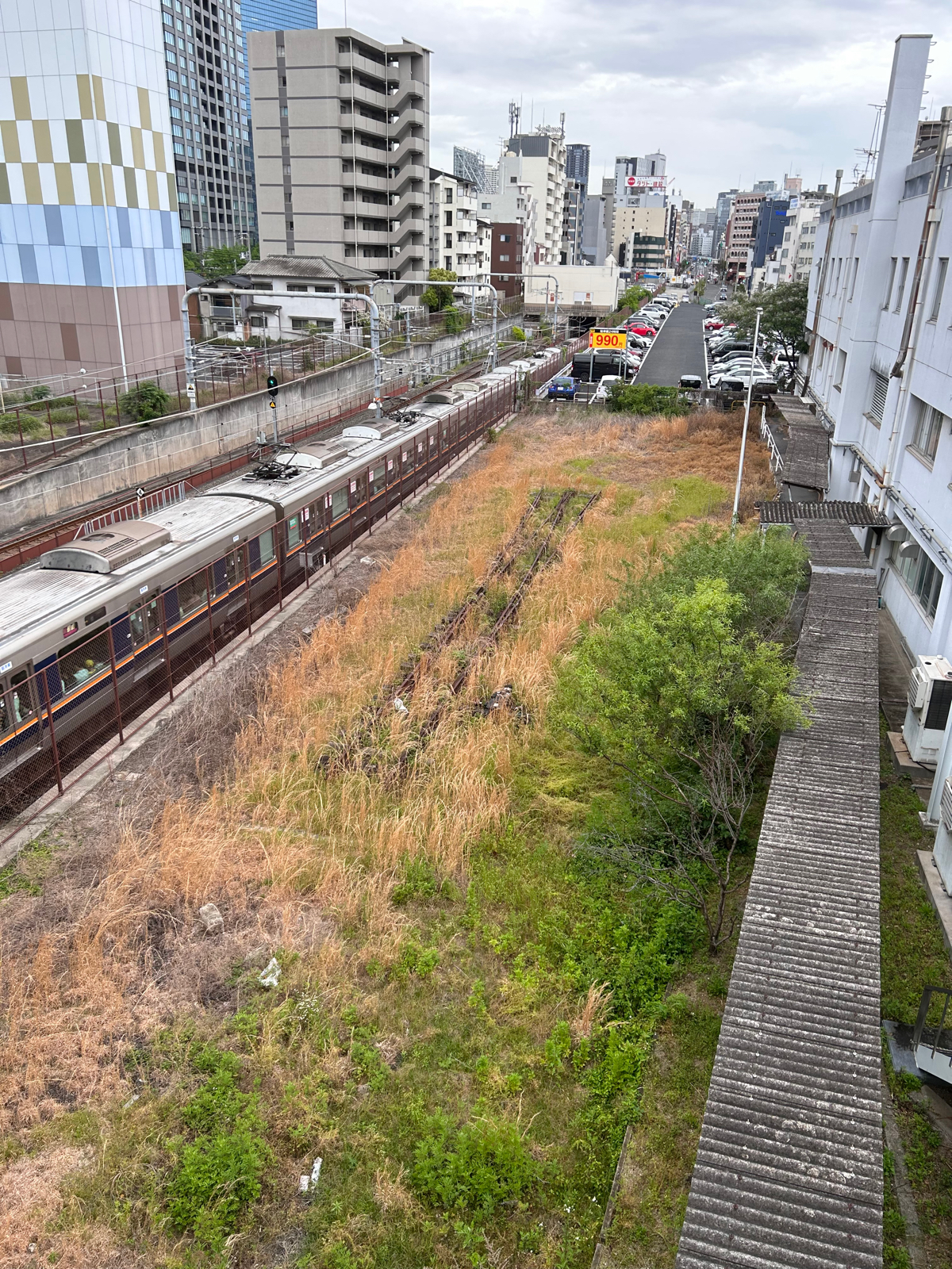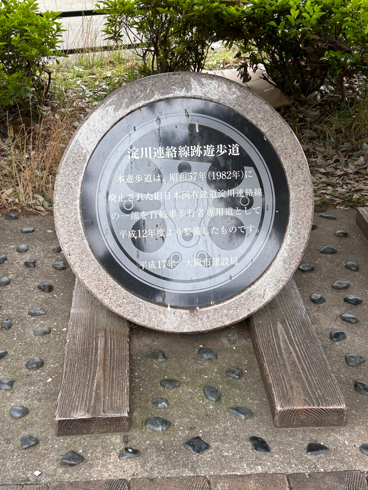 大阪市都島区にある京橋駅は、JR大阪環状線、片町線、東西線。私鉄では、京阪電車や、大阪メトロも乗り入れる鉄道の要所として栄えている。そんな大都会には廃線跡がいくつかある。一つ目は京橋駅から一つお隣の桜ノ宮駅北部にあった淀川貨物駅からの配線跡だ。線路自体はすでになくなっているが、その線路が通っていたことを伝える石碑がある。それがあるのは京橋駅から少し歩いたところにある新京橋商店街の中を通り、遊歩道に出たところだ。線路を真似たモニュメントとともに、淀川連絡線跡遊歩道の石碑があり、かつての路線を伝えている。二つ目は、JR片町線の京橋〜片町駅間だ。1997年に東西線開業とともに廃止されたのだが、現在でも線路がわずかに残っている。それは大阪ビジネスパークへ続く歩道橋から確認することができる。