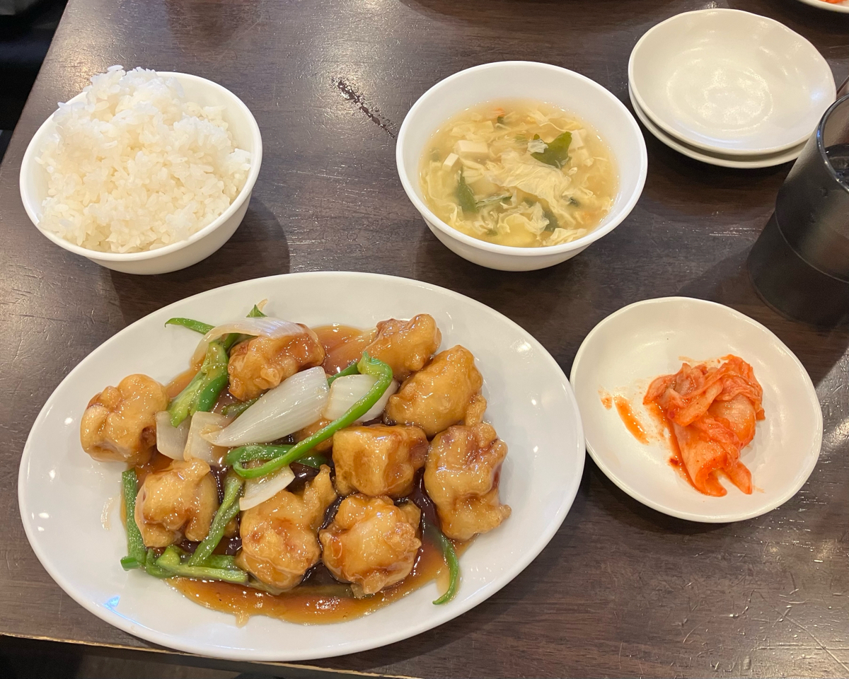 元町駅から、山側に徒歩5分のところにある中華料理屋さんです。 昼も夜も、いつ行っても、人がいっぱいで、コスパ最高、大人気のお店です。 今日は、ランチの酢豚セットをオーダーしました。