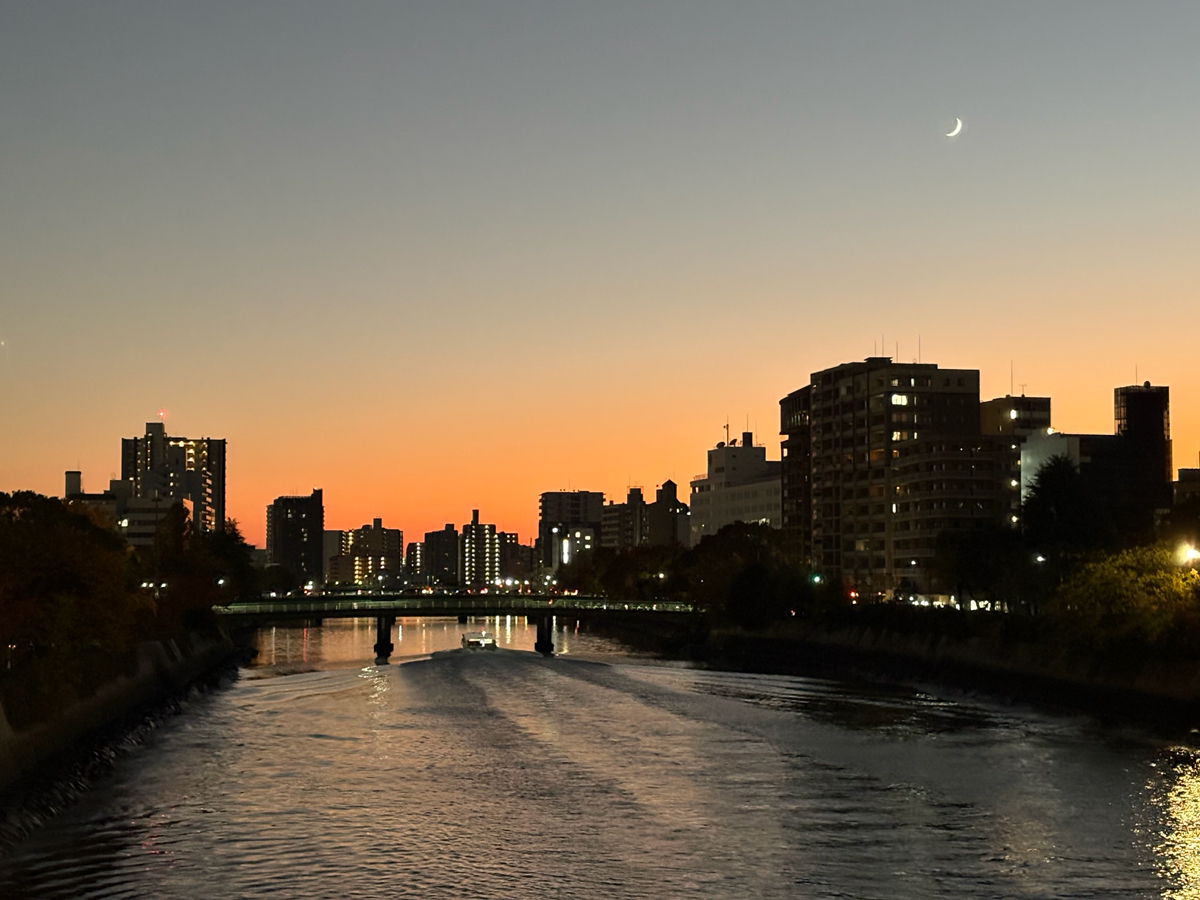 相生橋から旧太田川(本川)を臨む晩秋の夕暮れ。