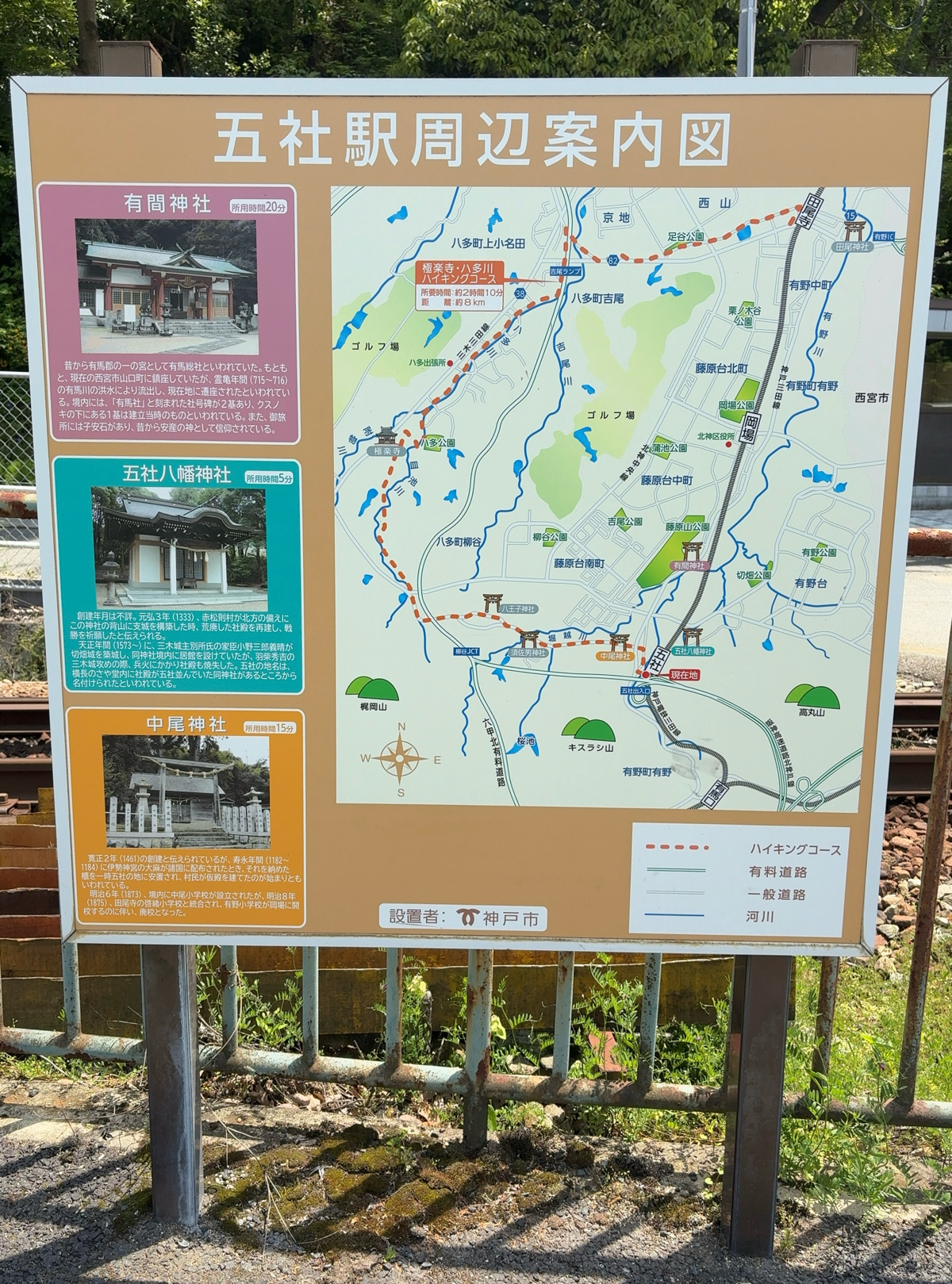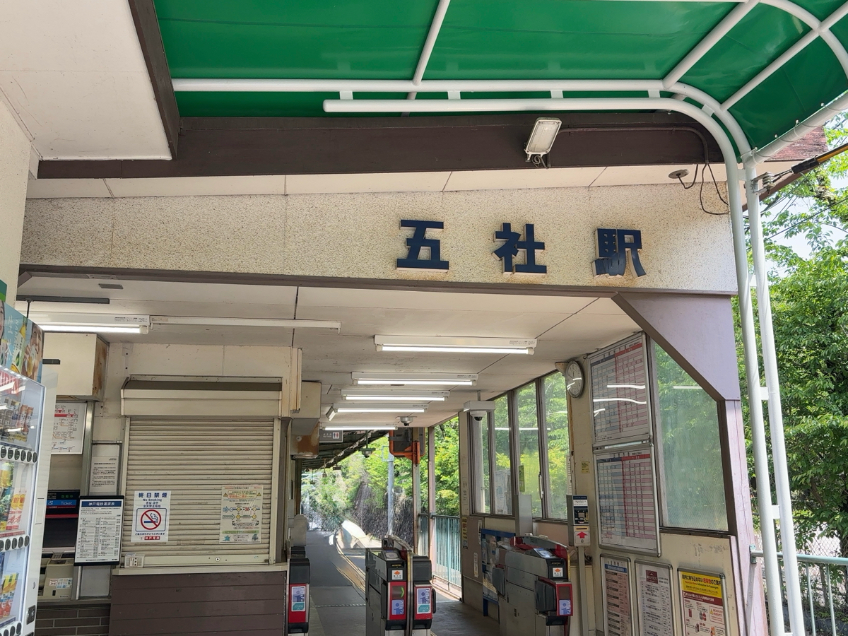 五社駅は、兵庫県神戸市にある神戸電気鉄道の駅であり、1928年に開業しました。 木々が生い茂っており、四季折々の景色を楽しむことができます。 五社駅周辺には有馬神社、五社八幡神社、中尾神社など多数の神社があります。