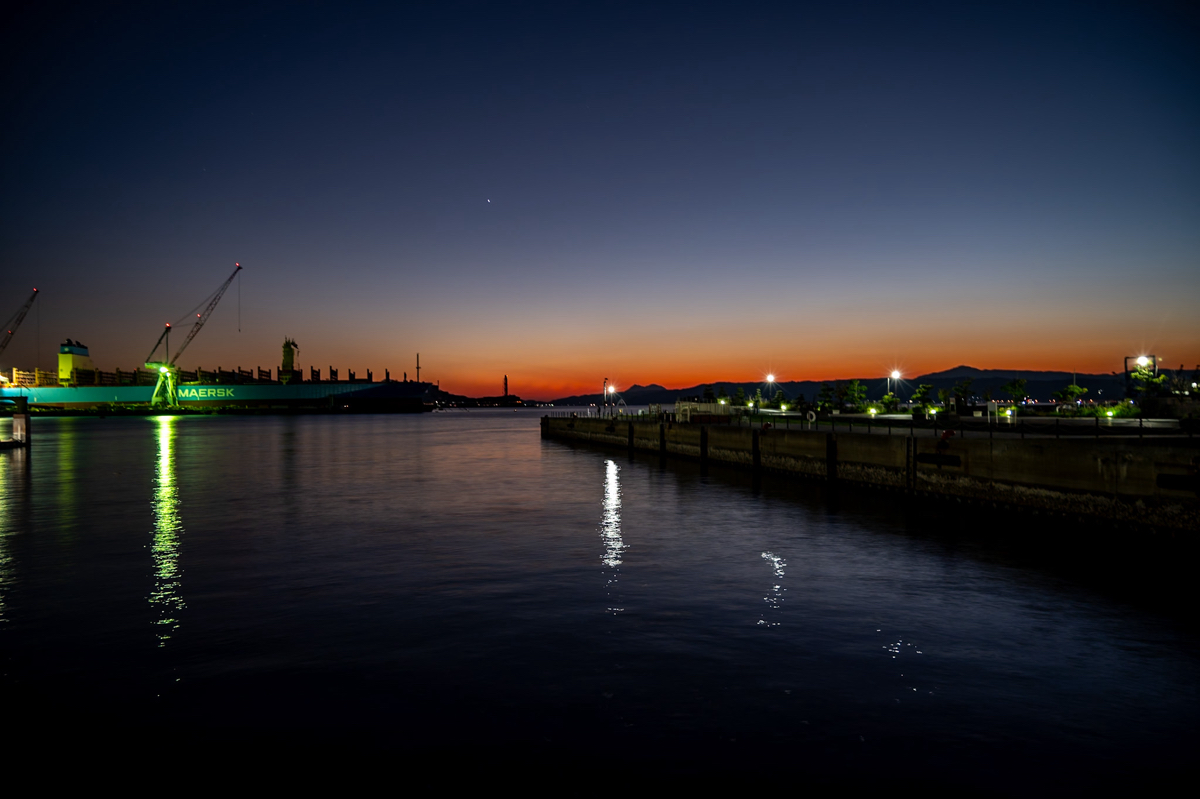 呉港の夕焼けです。 私が行った時は建造中の船もあり、 とても素敵な雰囲気でした。