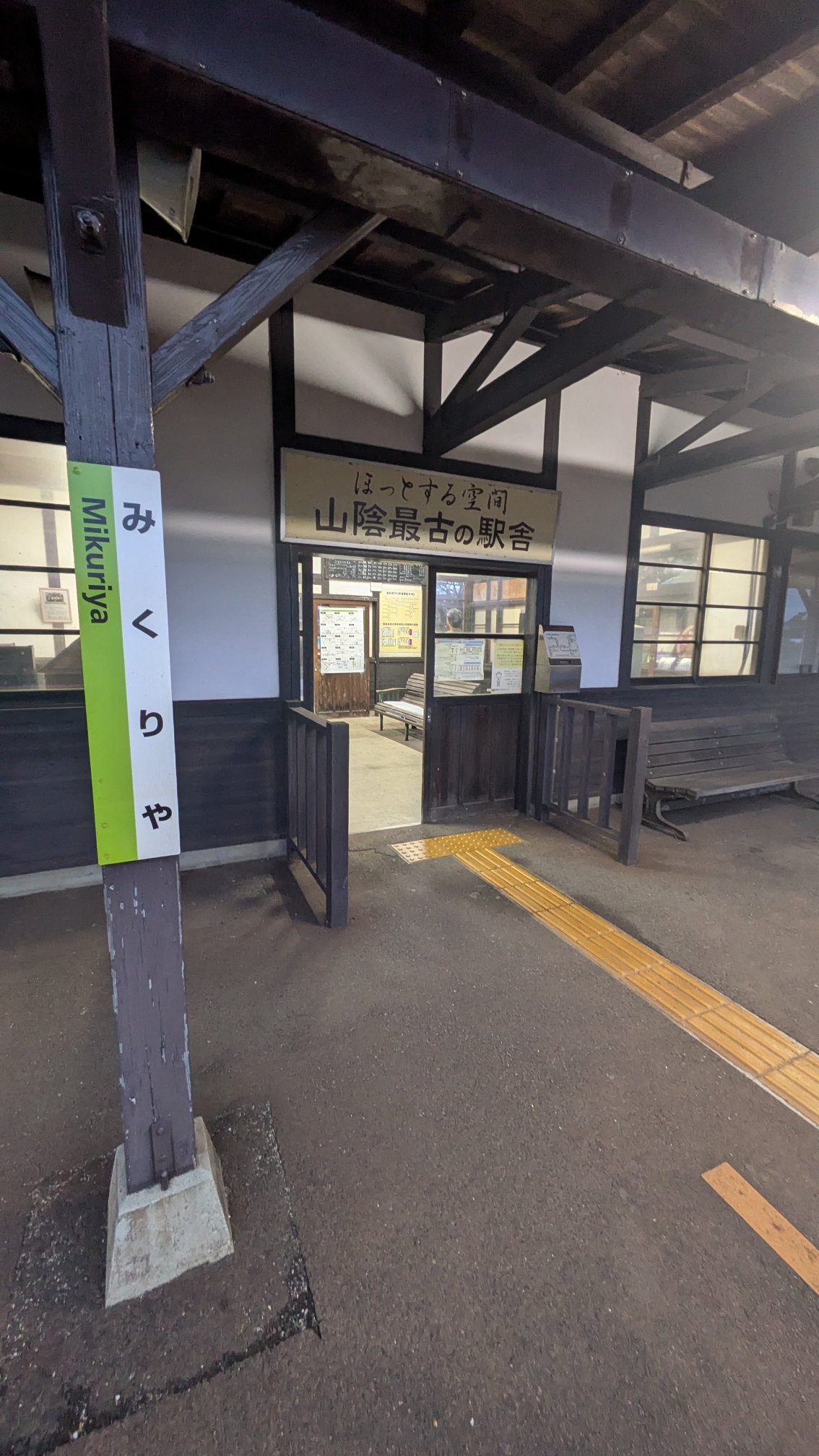 山陰最古の駅! なかなかに古いけど、でも趣があってよき! 御来屋(みくりや)って名前、コナンの映画で出てきて、大歓喜。たまたま……?
