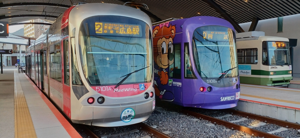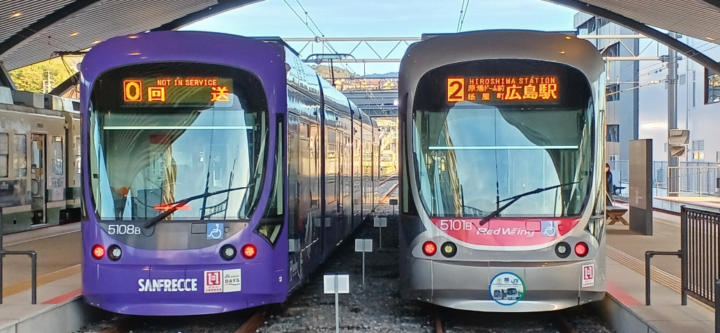 広島電鉄の色んな電車が宮島の玄関口まで運んでくれるよ❗