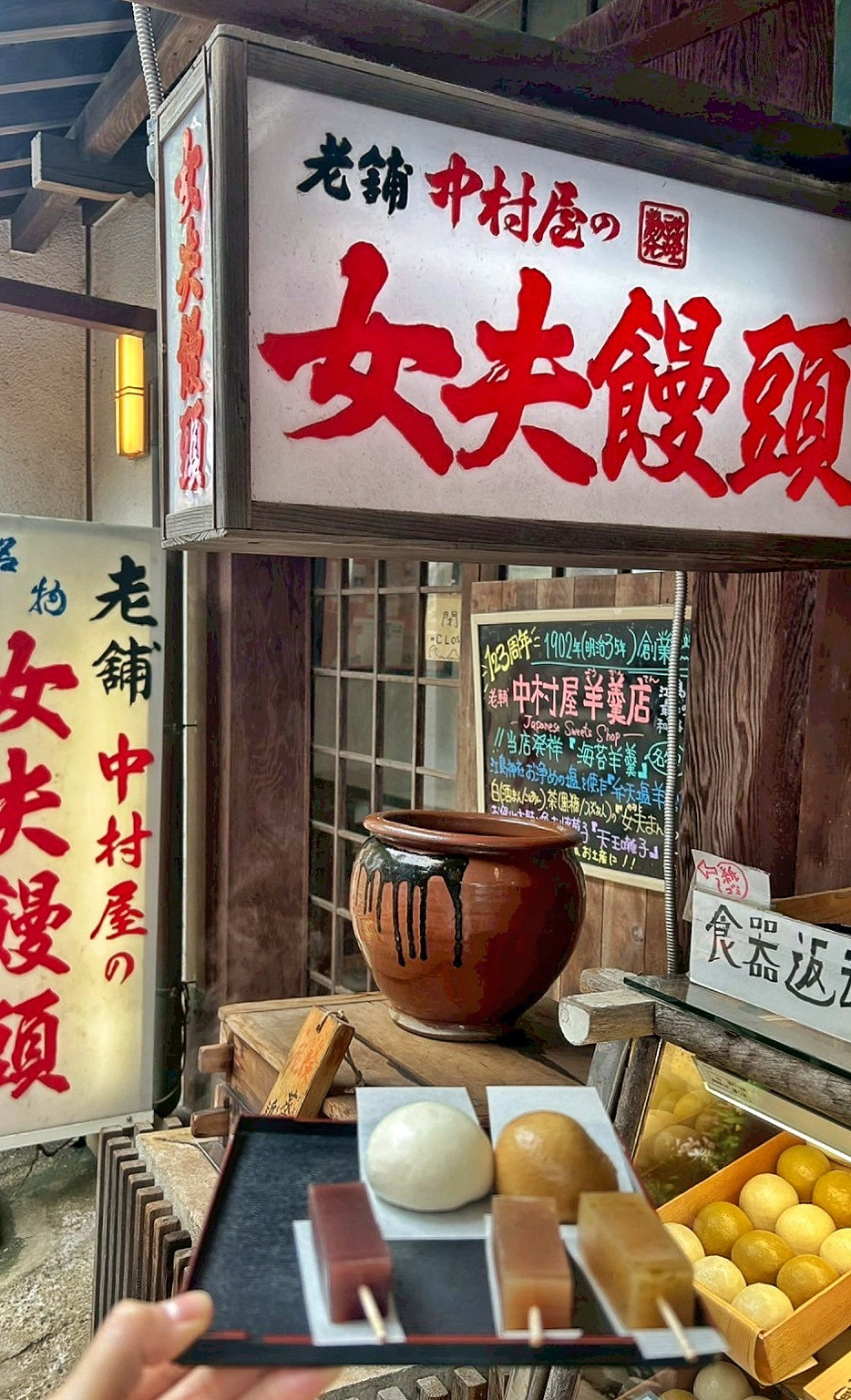 江ノ島の岩屋に行く途中にあるお店。 女夫饅頭と、海苔ようかんを頂きました。