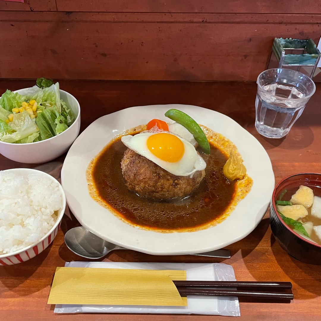 開店直後にお店の前を通りかかったらまだ並んでなかったので、オリジナルハンバーグ定食をいただきました!
