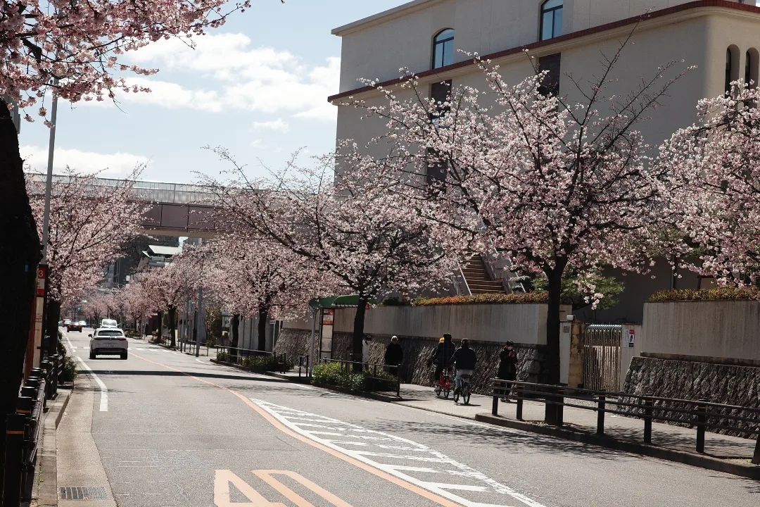 街歩きが楽しくなる、 洋館と桜並木🌸 例年は3月中旬ですが、 2024年は早かった! 3月初めには開花しました🌸 2024年3月16日には 文化のみちで桜みちまつりが開 されるのでLet's Go🌸