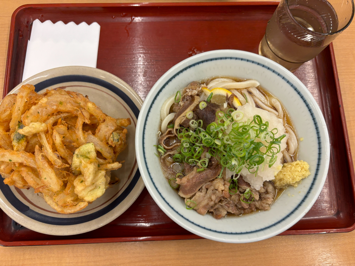 肉うどんとかき揚げのセットがお気に入りです。
