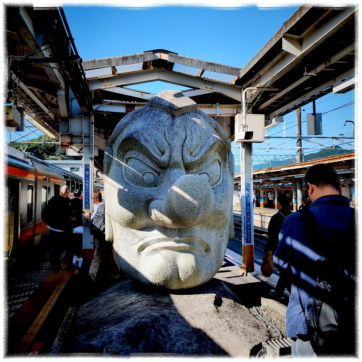 電車を降りたら天狗様がいてびっくり。