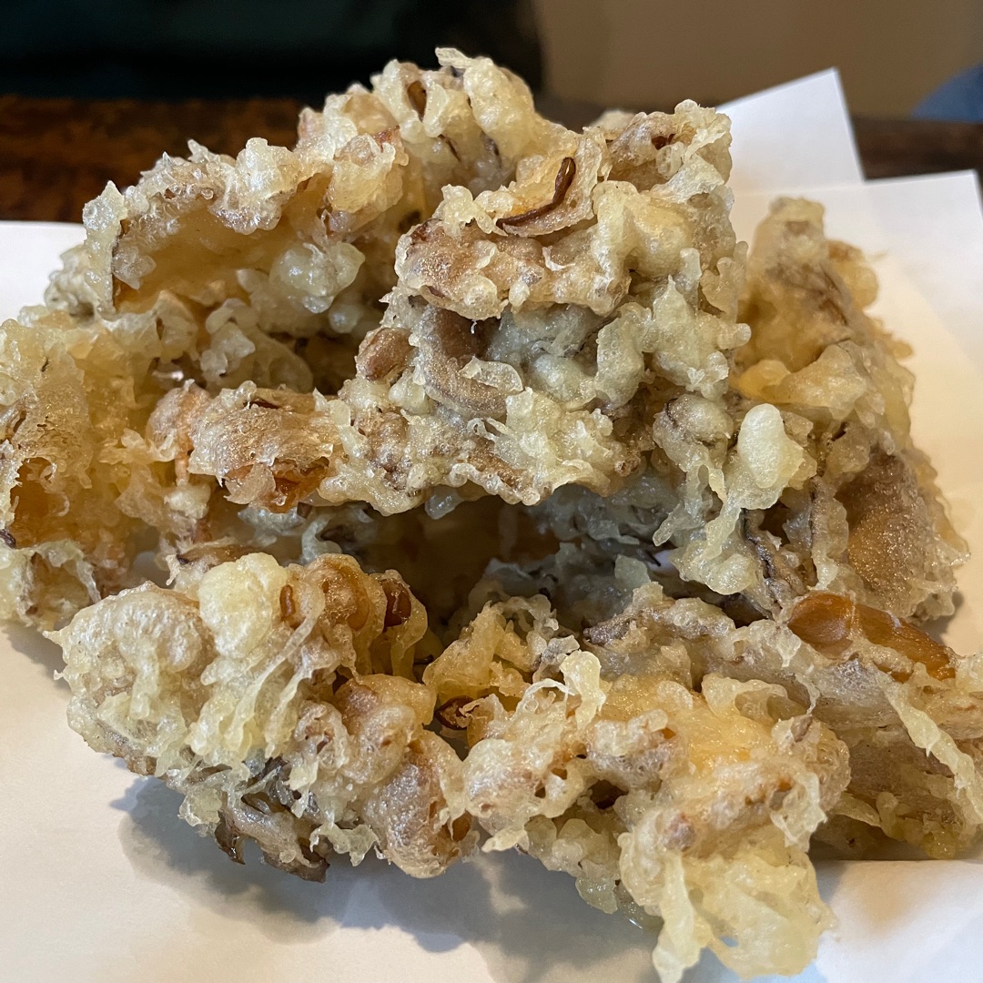 山菜と野菜の天ぷら盛り合わせかきのこの天ぷら盛り合わせかで迷っていたら、壁に「舞茸だけの天ぷら」というお品書きが貼ってあるのを見つけました!