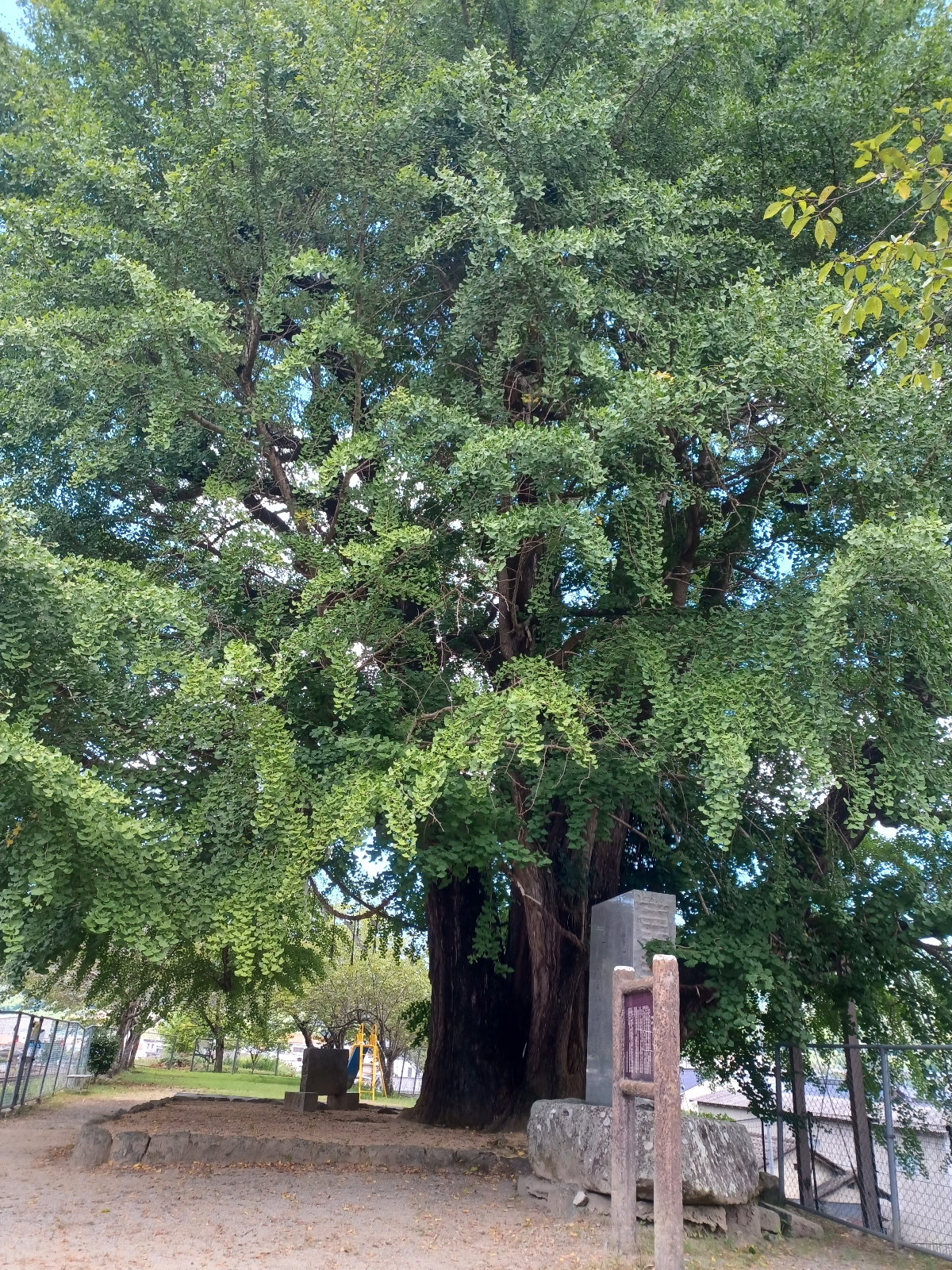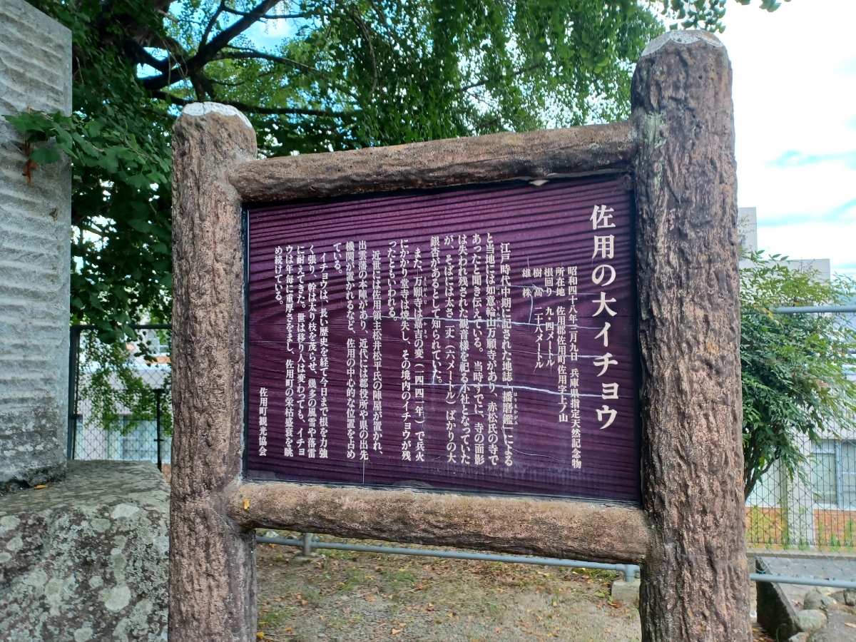 『佐用の大イチョウ』 佐用町の象徴で守り木である大イチョウは、樹齢1000年、樹高28Mで兵庫県指定天然記念物です。 緑があふれるシーズンにはイチョウの生命力を感じられ、黄葉シーズンにはまっ黄色に染まった姿に、季節の変化を感じる事ができます。 大イチョウは小さな公園にあり、すぐ横を姫新線が走っています。 イチョウと汽車のコラボ撮影をするのも楽しいですね。