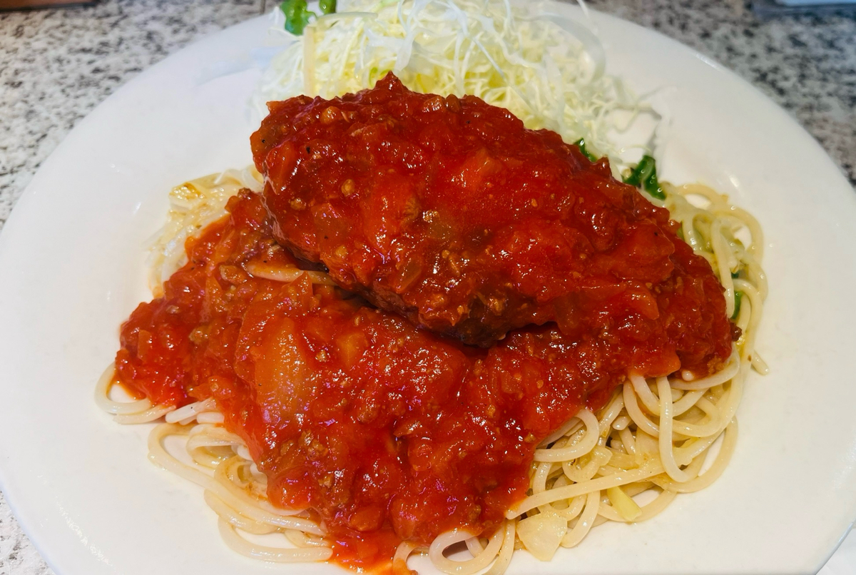 一度は閉店した長年愛された洋食屋さん 別の場所で昼だけ少し営業中 写真は ハンバーグミートスパ
