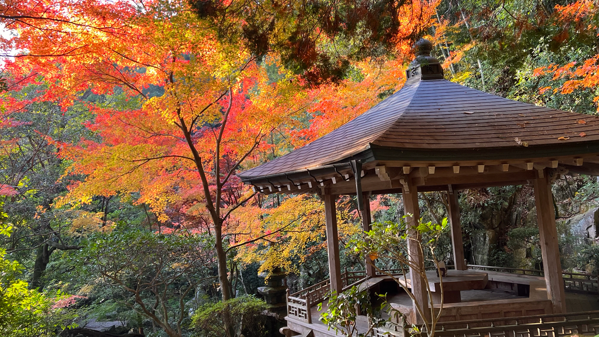 広島駅からJRで約10分、三滝駅から徒歩10分。市内からとても近場にある紅葉スポット三瀧寺。バイクでも車でも駐車、駐輪スペースがありアクセスも楽です。360度広がる紅葉は圧巻です。