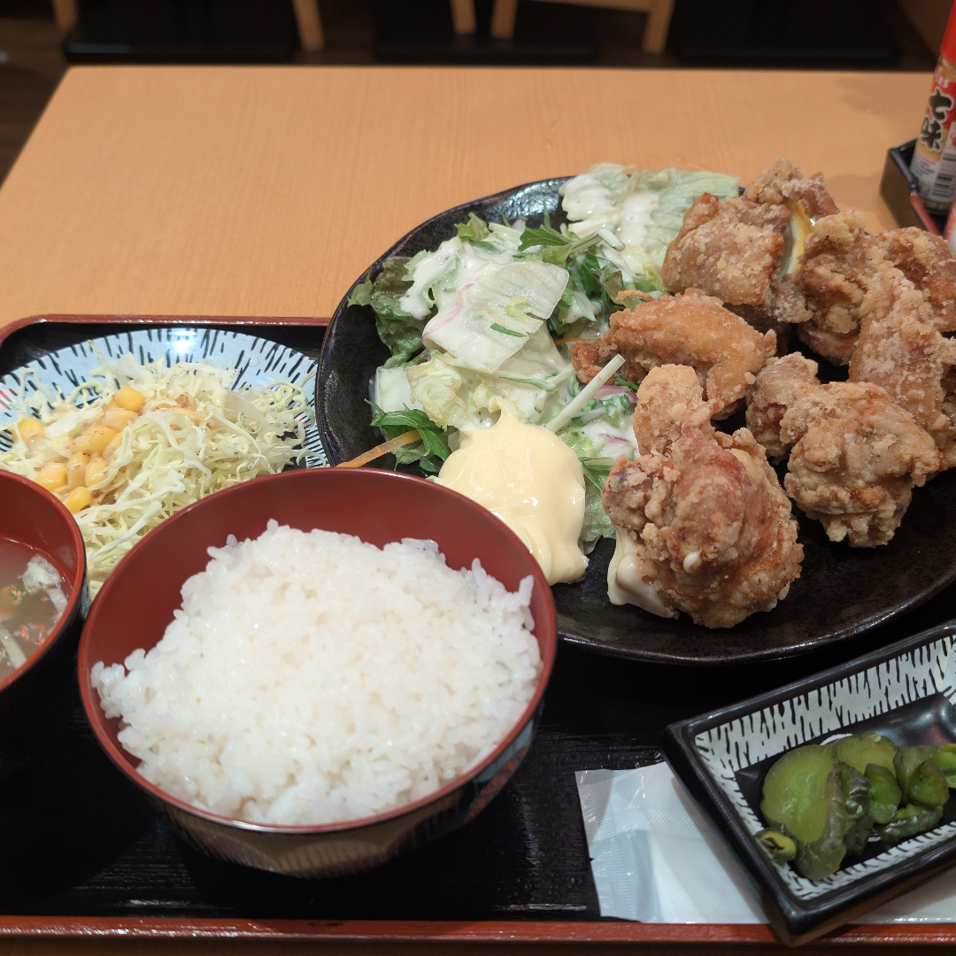 「鶏唐揚げ定食」は、ランチタイムに提供される定食メニューのひとつ。Instagram上の投稿でも、平日ランチタイムに鶏唐揚げ定食をしっかり楽しむ姿が見られるなど、定番の一皿として好評です。 ボリューム満点: 唐揚げは一つひとつが大きく、食べ応え十分。 付け合わせも安心: ご飯・味噌汁・サラダなどが付く、 定食としての“完成形”。 ランチ利用にも◎: 平日昼でも訪れるお客さんが多く、人気ランチの一環として定着しています。