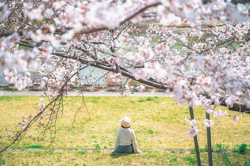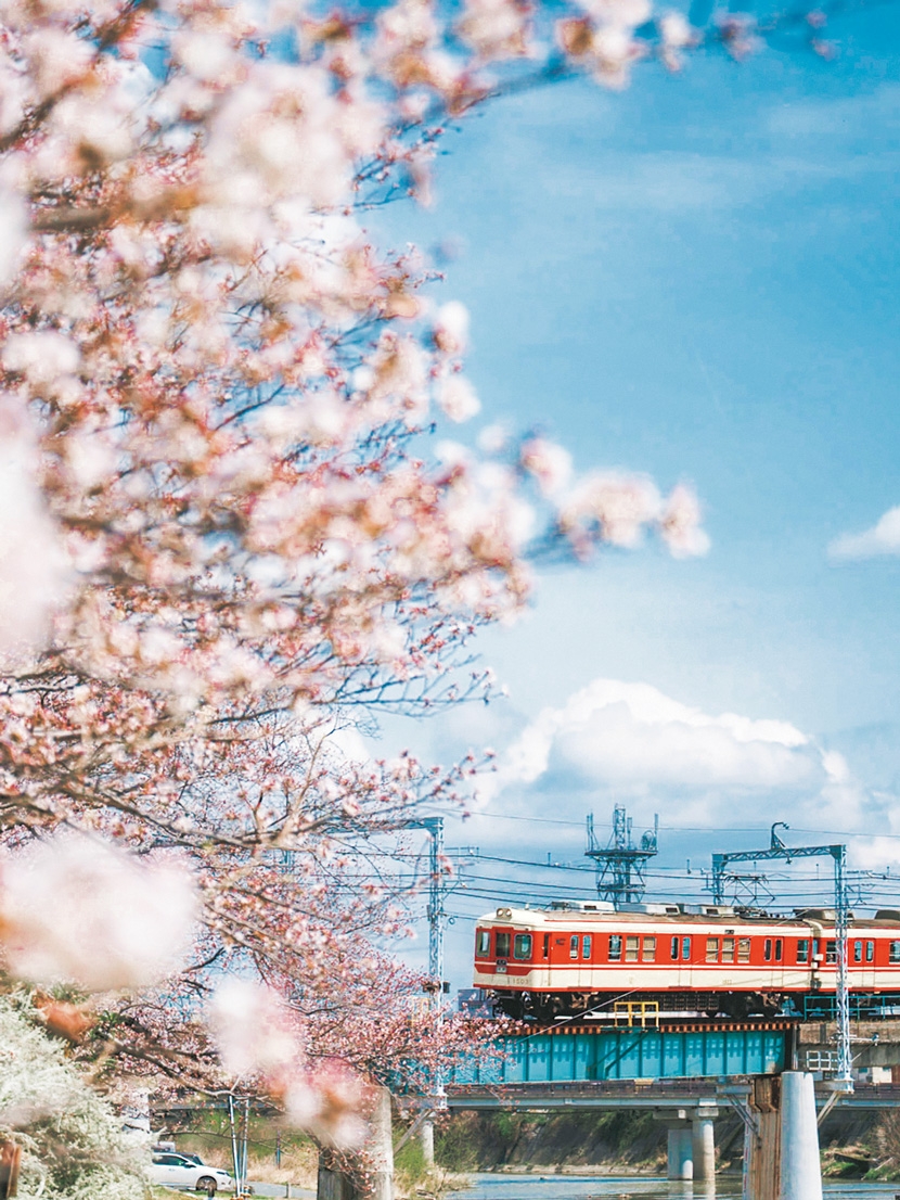 三木市の中央部を流れる美嚢川沿いが、淡い桜色に包まれます。 河原に広がる芝生広場は、お花見を兼ねたピクニックにピッタリ。 鉄橋を走り抜けていく神鉄の車両と桜が観賞できるため、鉄道ファンにも人気のスポットです。 ●交通アクセス 三木駅下車、徒歩約5分