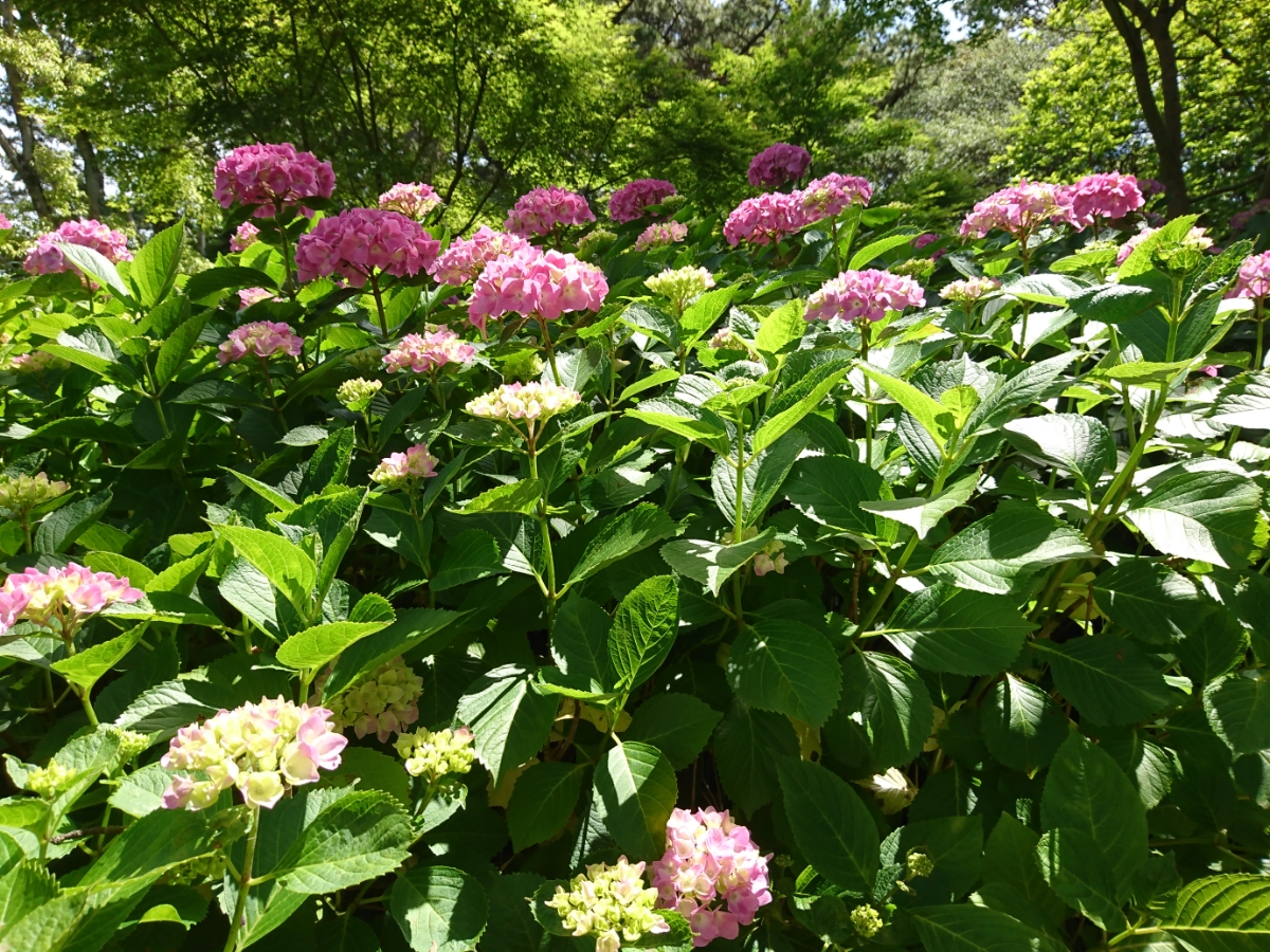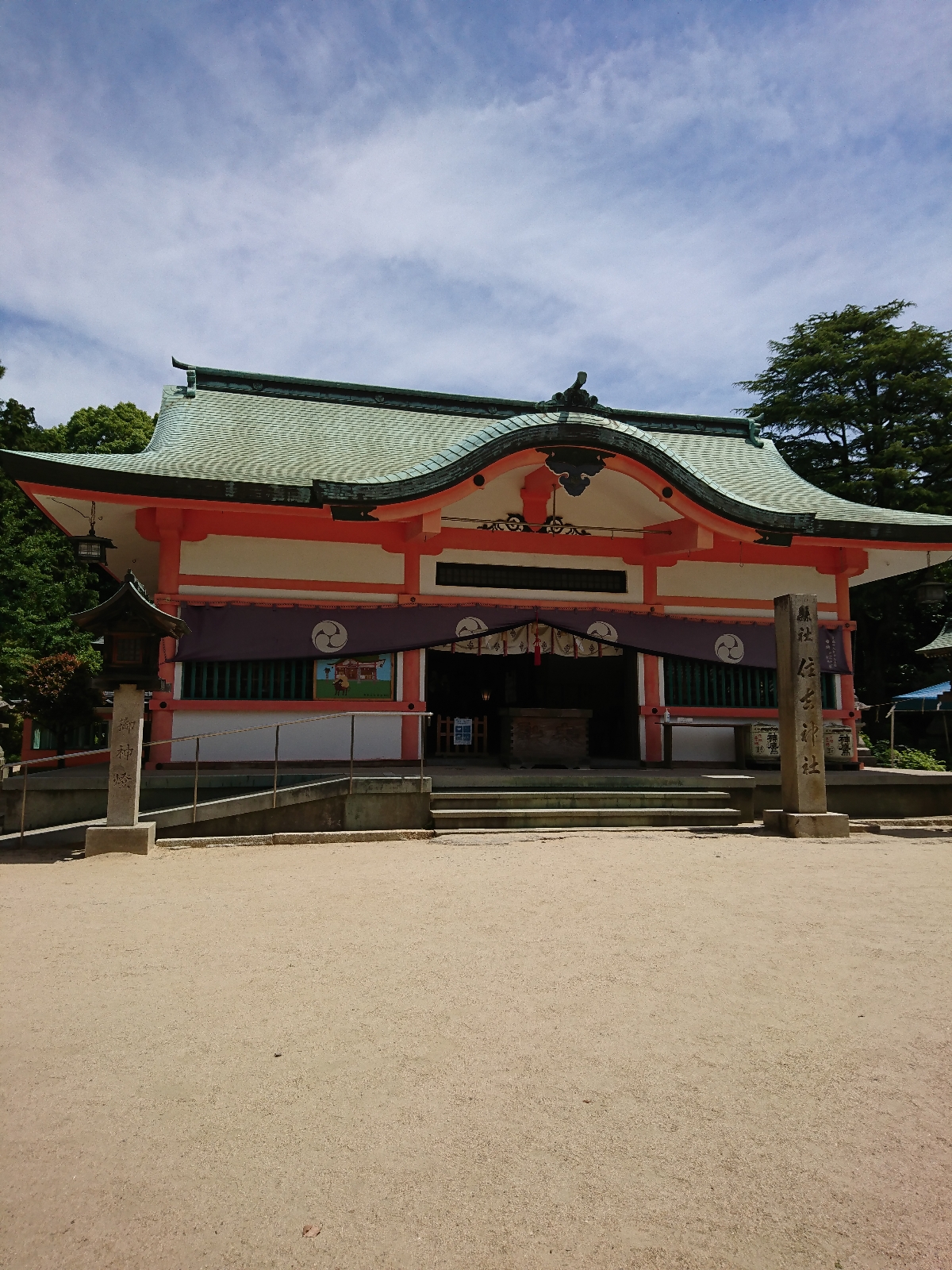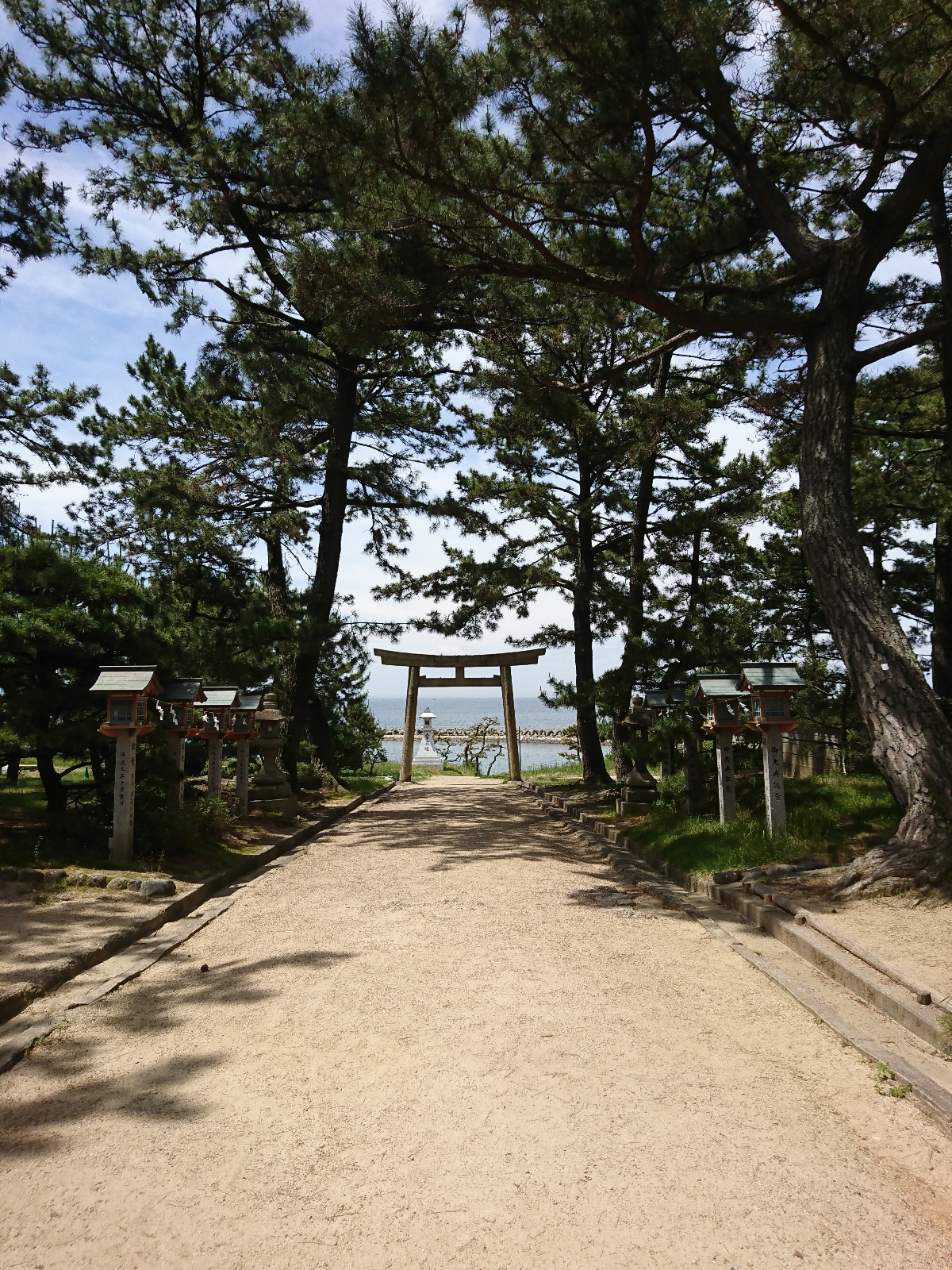 梅雨の時期には、神社内に紫陽花がキレイに咲いています。 海が近いので鳥居から瀬戸内が見渡せます。