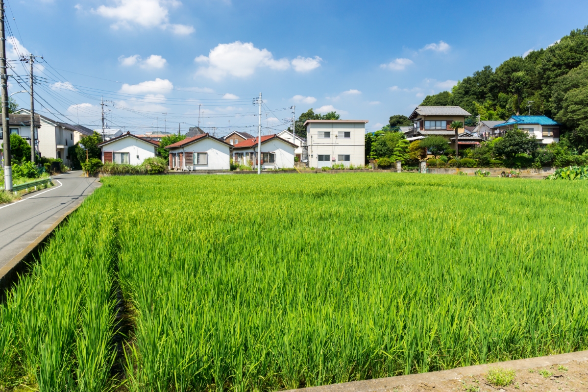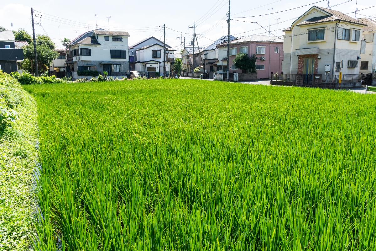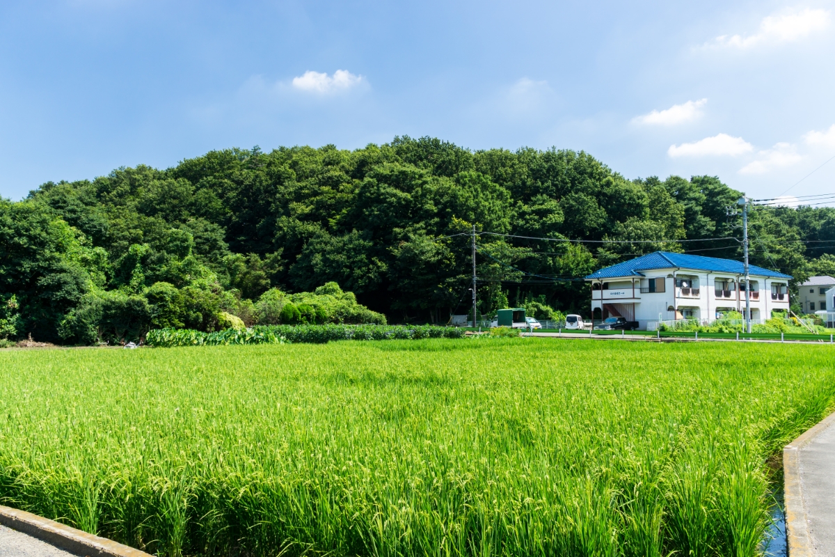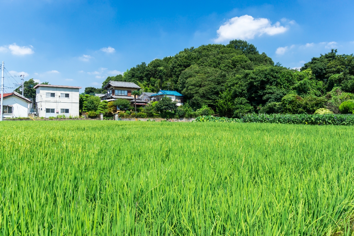 かに山キャンプ場のふもとに広がる水田地帯です。 故郷の田園風景を思い出します。