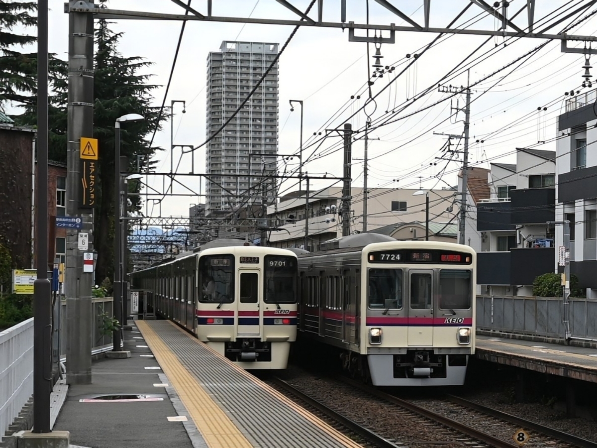 柴崎駅で京王線の電車を撮影しました。 お隣にタワーマンションが出来て景色が変わりましたが、この駅が醸し出す佇まいが大好きです。 調布市制施行70周年ヘッドマークも撮れました。