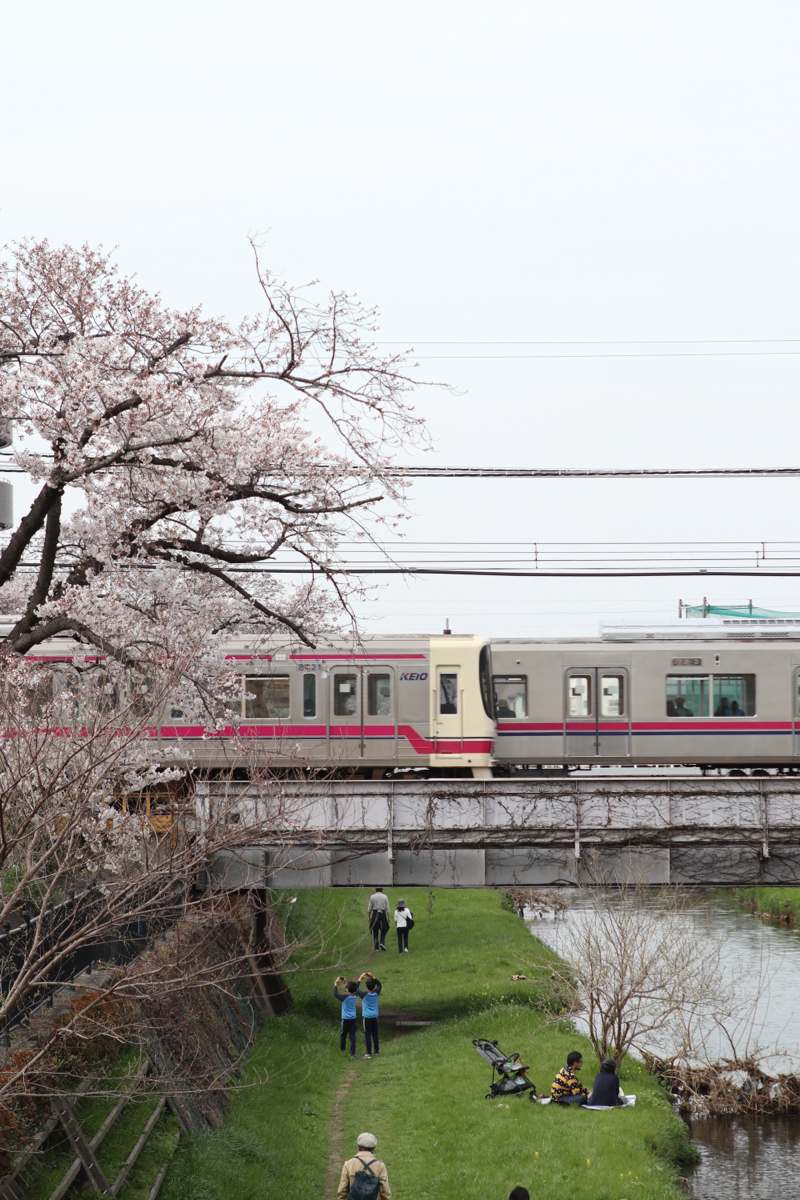 野川で京王線を撮っているのは私だけではなかったです。いい一枚撮れたかな?