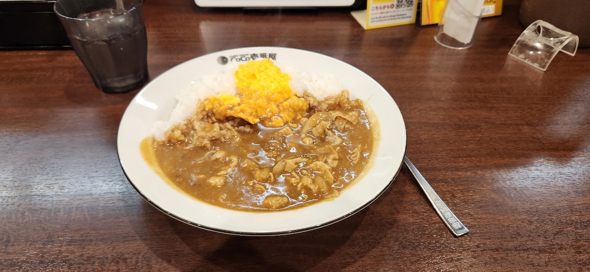 マグスミノエボウルの近くの横に、CoCo壱番屋住之江店があります。今日の食べたのは、カレーライスとスクランブルエックとトッピングに、豚肉を食べました、定価1202円です。美味しいです。また、CoCo壱番屋に行きたい