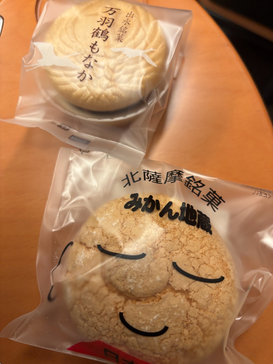 出水駅ナカのこあら食堂🐨は、チキン南蛮🐓やエビフライ🍤などの定食や野菜たっぷりチャンポンと全てボリューム満点です😋 食後は目の前のお土産屋さんで、出水名物の鶴の最中(あんこたっぷり😍)と、こちらも名産のみかんを使ったブッセを買いました☺️
