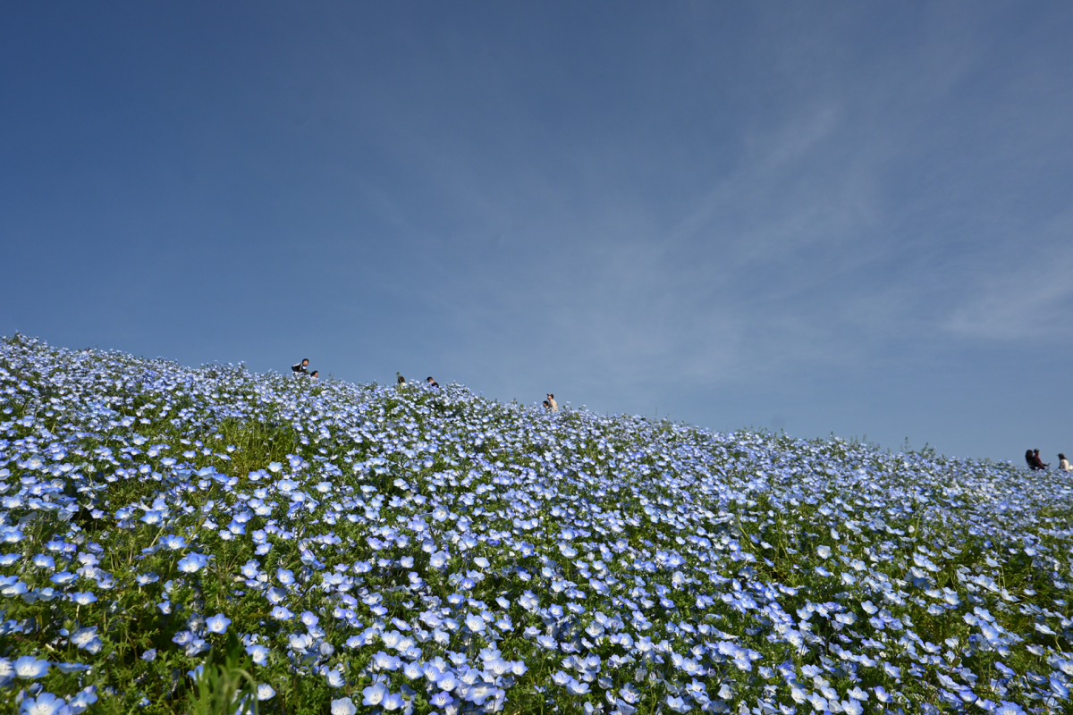2025/5/3、ひたち海浜公園のネモフィラを見に行きました! まだまだ綺麗でした! この日は快晴で空の青、ネモフィラの青、そして海の青がコラボしてとても綺麗でした⭐︎ ひたち海浜公園へは勝田駅からバスで20分ほど。西口から入るのが便利です!
