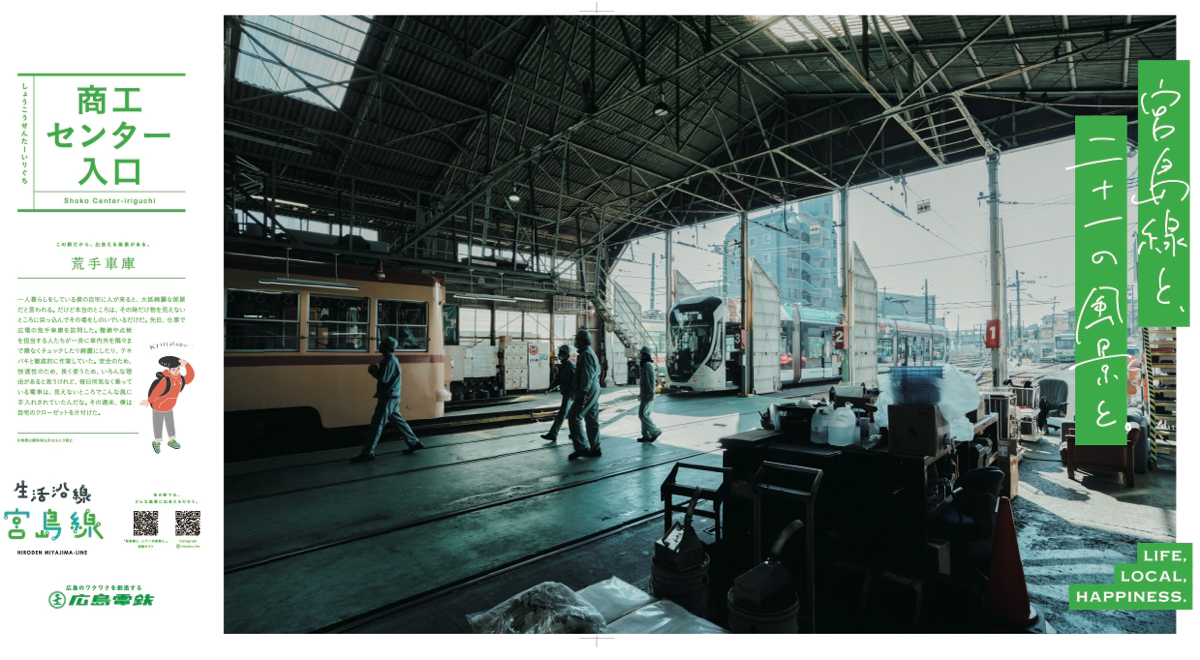生活沿線 宮島線 広島電鉄の宮島線全駅がポスター展会場に。 広電西広島駅から広電宮島口駅までの21駅を会場に、1駅1枚、全21種類の「この駅で出会える風景」ポスターを期間限定展示中です。 いざ、各駅を巡る展覧会へお越しください。