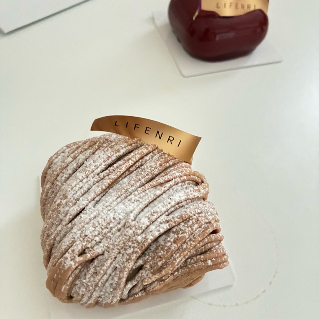 初めてこのモンブランを見たとき、正直「モンブランって、こんな形していいんだ」と思った。 丸くて、山のように絞られている——そんな固定概念を軽やかに裏切ってくる、四角いモンブラン。それが、LIFENRIの「洋栗のモンブラン」だ。 まず目を引くのは、そのビジュアル。 細く繊細に重ねられたマロンクリームが、きちんと角を持ったスクエア型に収まっている。上からふわっと粉糖がかかり、どこかニットのような、やさしく包み込む雰囲気もある。可愛い、という言葉が素直に出てくる見た目で、箱を開けた瞬間に気持ちが一段上がる。 そして、味。 これがまた「今までにない」と感じさせる理由のひとつがベリー系の要素。栗のコクや甘みをベースにしながら、ふわっとベリーの酸味が重なってくることで、全体が驚くほど軽やかにまとまっている。ただ甘いだけでは終わらず、後味にきちんと輪郭が残る。モンブランなのに、どこか洗練されたケーキを食べている感覚になる。 食べ進めると、層ごとの食感の違いも楽しい。 なめらかなマロンクリーム、内部の構成、それぞれが主張しすぎず、でも確実に役割を持っている。四角い形だからこそ、フォークを入れたときに断面がきれいで、味のバランスも取りやすい。見た目の新しさが、ちゃんと食べやすさにもつながっているのが印象的だった。 このモンブランを誕生日にもらったら、すごく嬉しいと思う。 派手すぎないのに特別感があり、「自分のために選んでくれた」という気持ちが伝わってくるケーキ。可愛さと大人っぽさのバランスがちょうどよく、年齢を問わず喜ばれる理由がよくわかる。 定番をあえて崩しながら、ちゃんと“美味しい”に着地している。 ベリー系で、四角くて、でもしっかりモンブラン。 記念日やちょっと特別な日に、記憶に残る一品だった。
