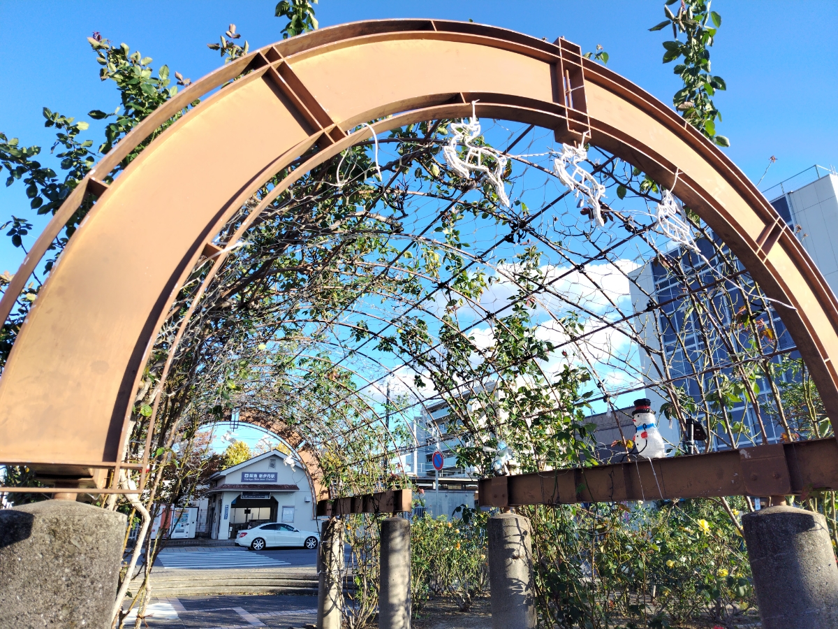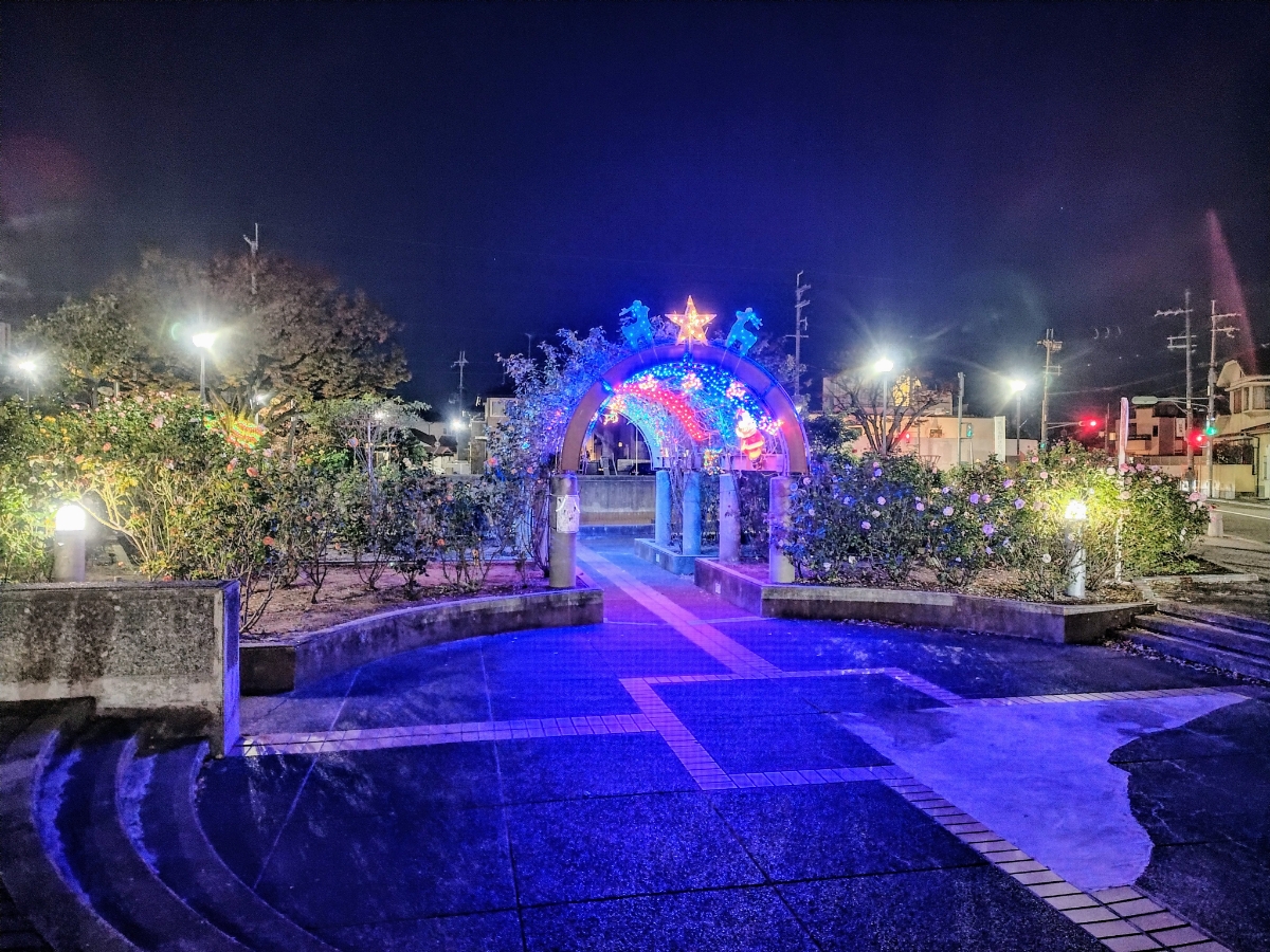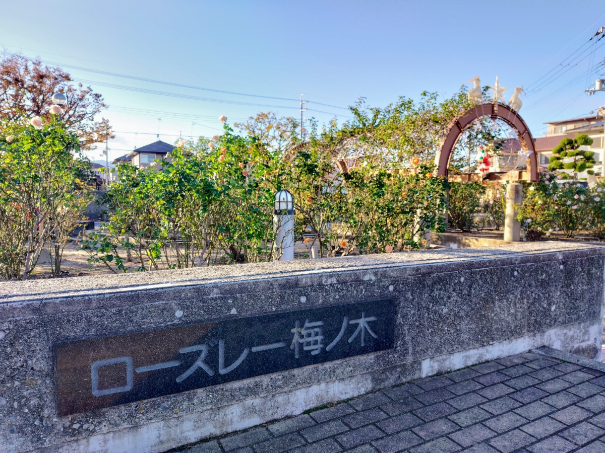 駅西側にある公園「ローズレー梅ノ木」では、毎年地元自治会の皆さんがイルミネーションを実施しています。 (期間は11月下旬から12月25日まで。点灯時間は日没から0時まで) キレイなだけでなく、住民の方々が帰宅時に駅へ降り立って灯りがあるとホッとできるのでは、という想いも込められているそうです。 こちらの公園は名前の通り、薔薇が植えられており、年に数回鮮やかな花が咲き誇ります🌹 小さな公園ですが、昼も夜も目を楽しませてくれるので、伊丹へお越しの際に立ち寄ってみてはいかがでしたでしょうか? ※阪急伊丹線 伊丹~新伊丹間の車窓からも観れます。(伊丹行きは進行方向左手)