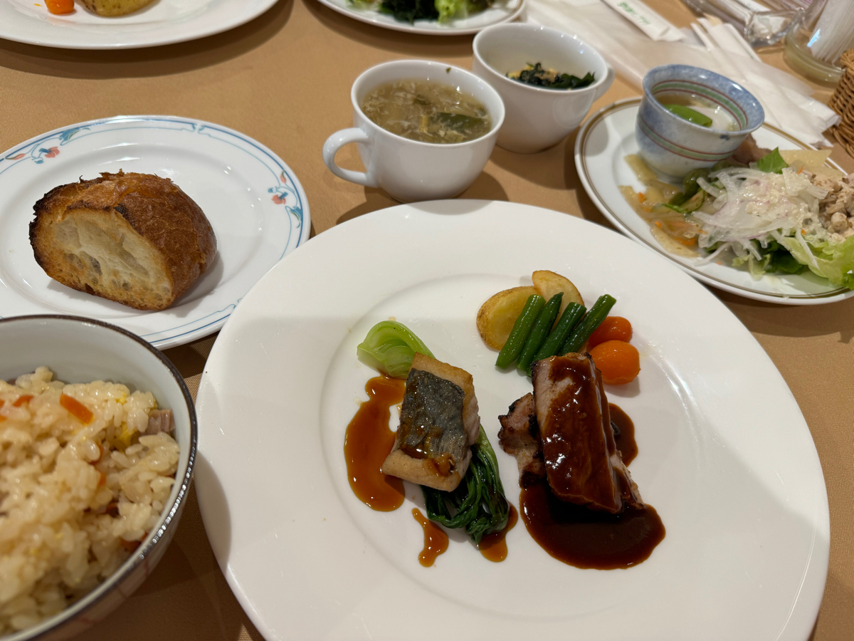 新井口駅からスグのホテル広島市サンプラザ1階の「レストランクレセント」さん ランチはメイン料理を1つ選んで、後のサイドメニューやドリンクがブュッフェ形式になってます。