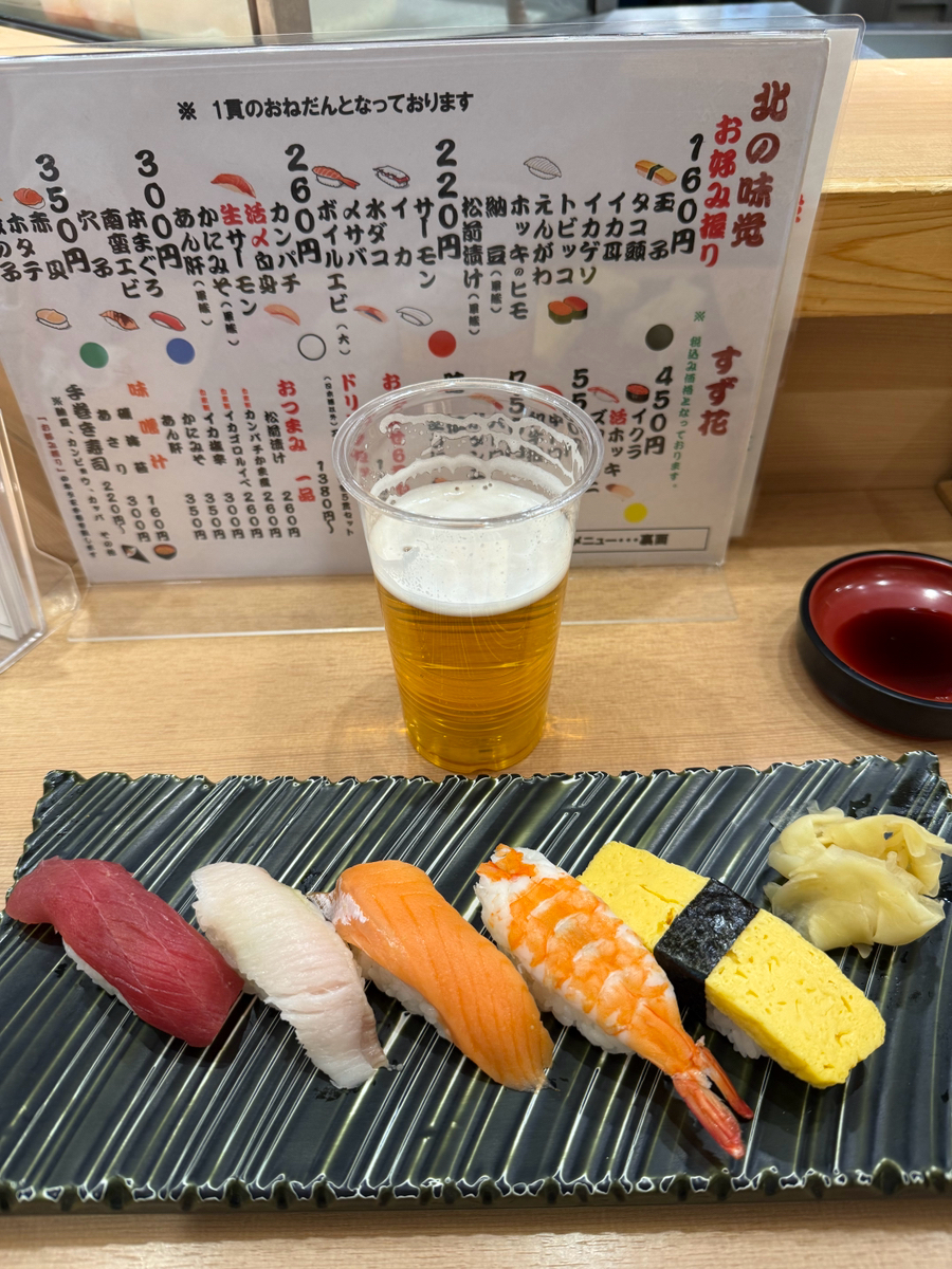 1380円でビール付き5貫🍺🍣