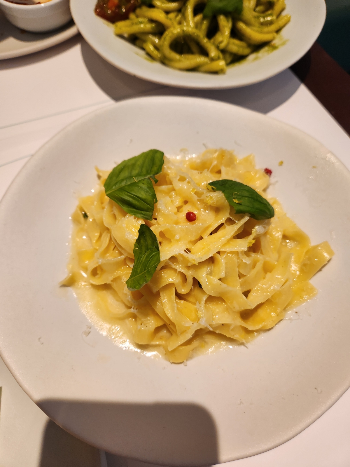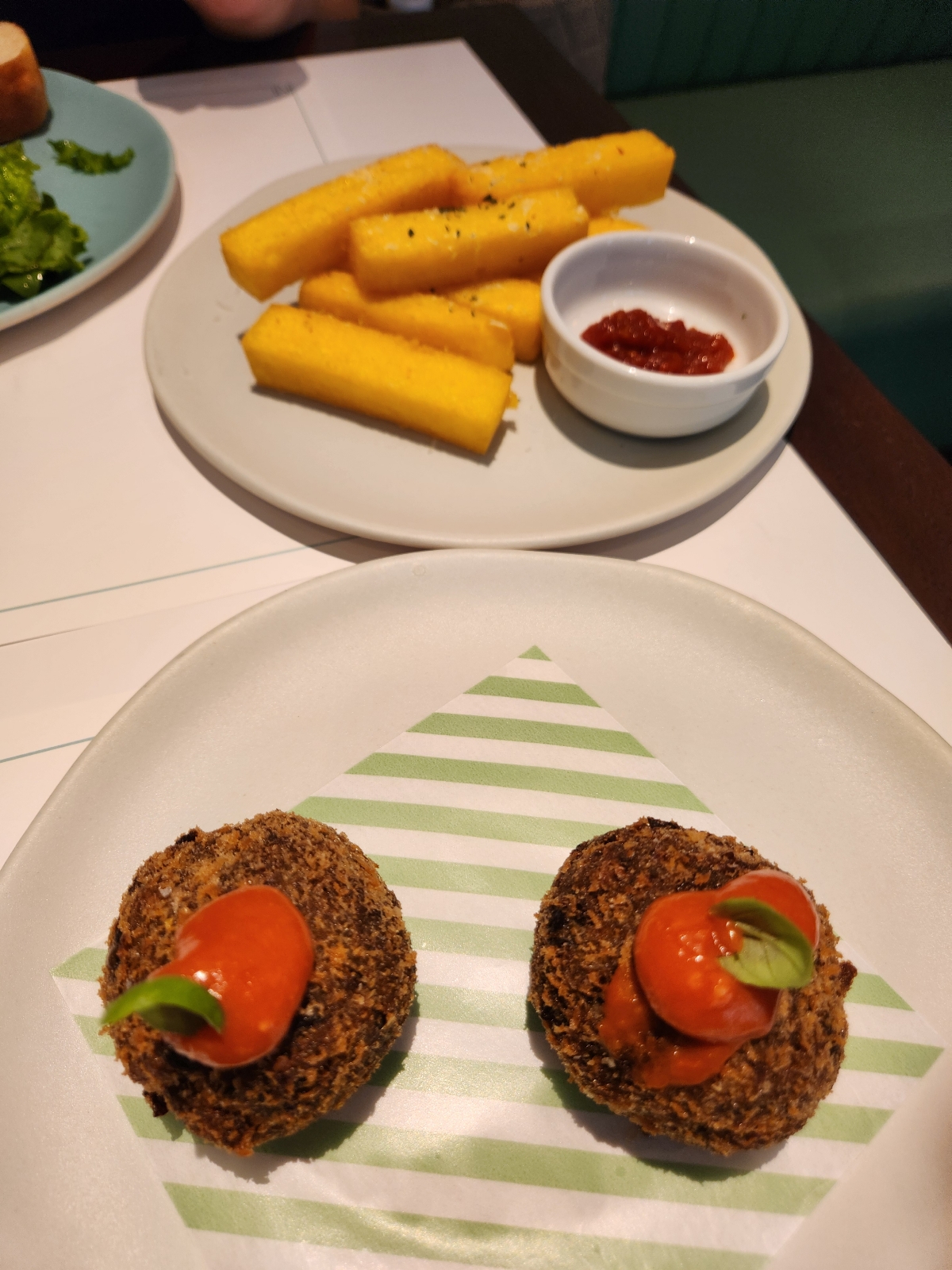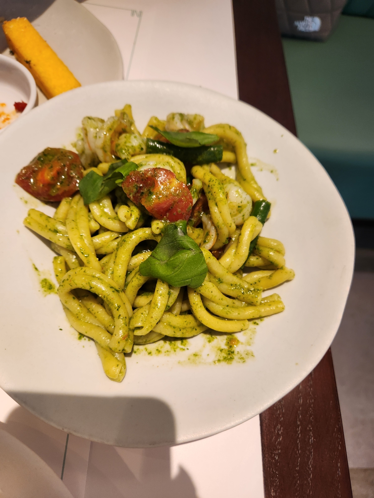 茄子のポルペット フライドポレンタ自家製スイートチリジャム添え レモンバターチキンタリアテッレ 海老とトマトのジェノベーゼ カサレッチェ
