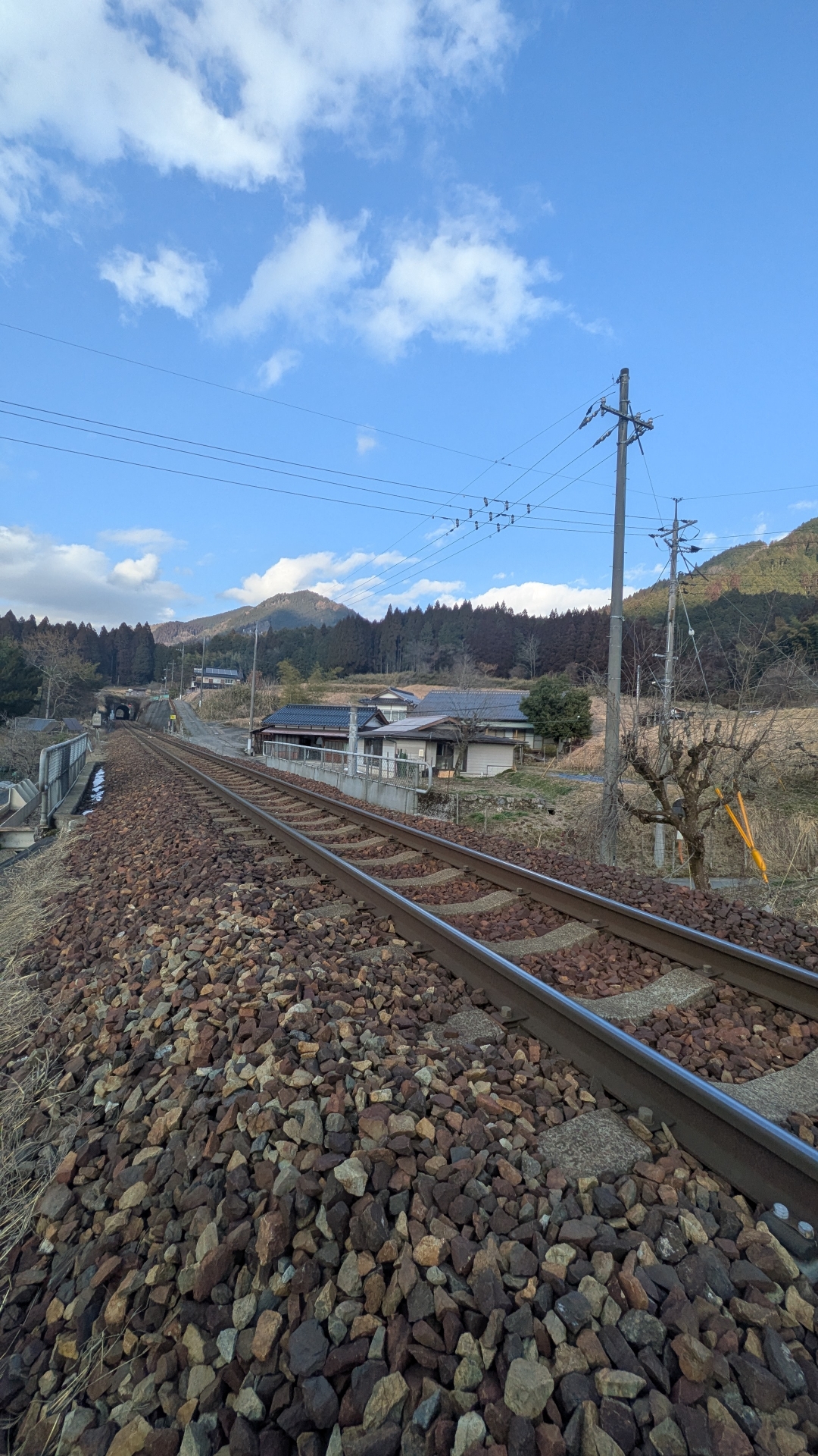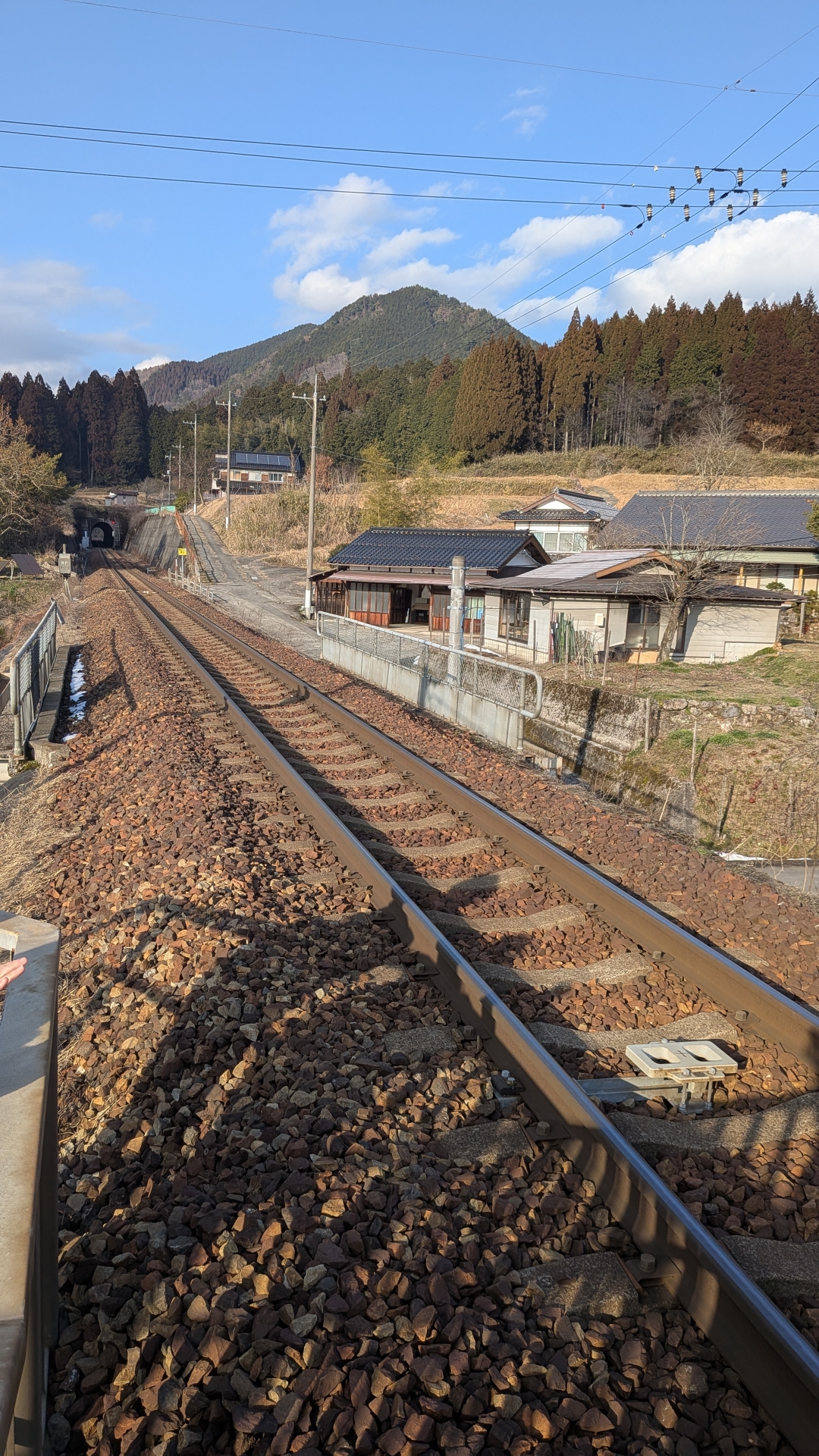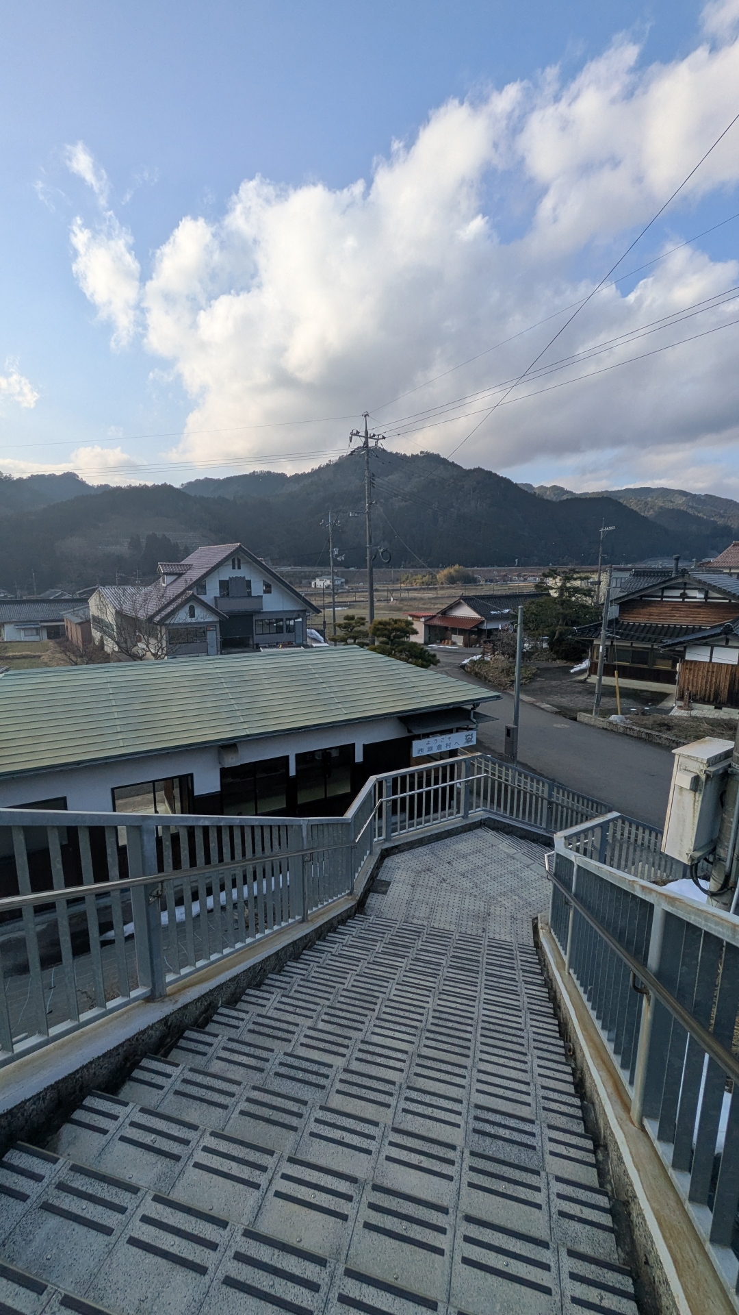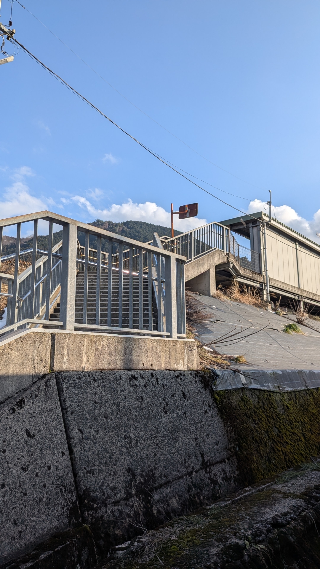 階段を登った所にホームがあり、階段途中に線路が見え、線路との距離がとても近い駅である。手を伸ばしたら危ないので注意! 駅に1人乗りの電気自動車、コムスがあり探索が出来そうだ。