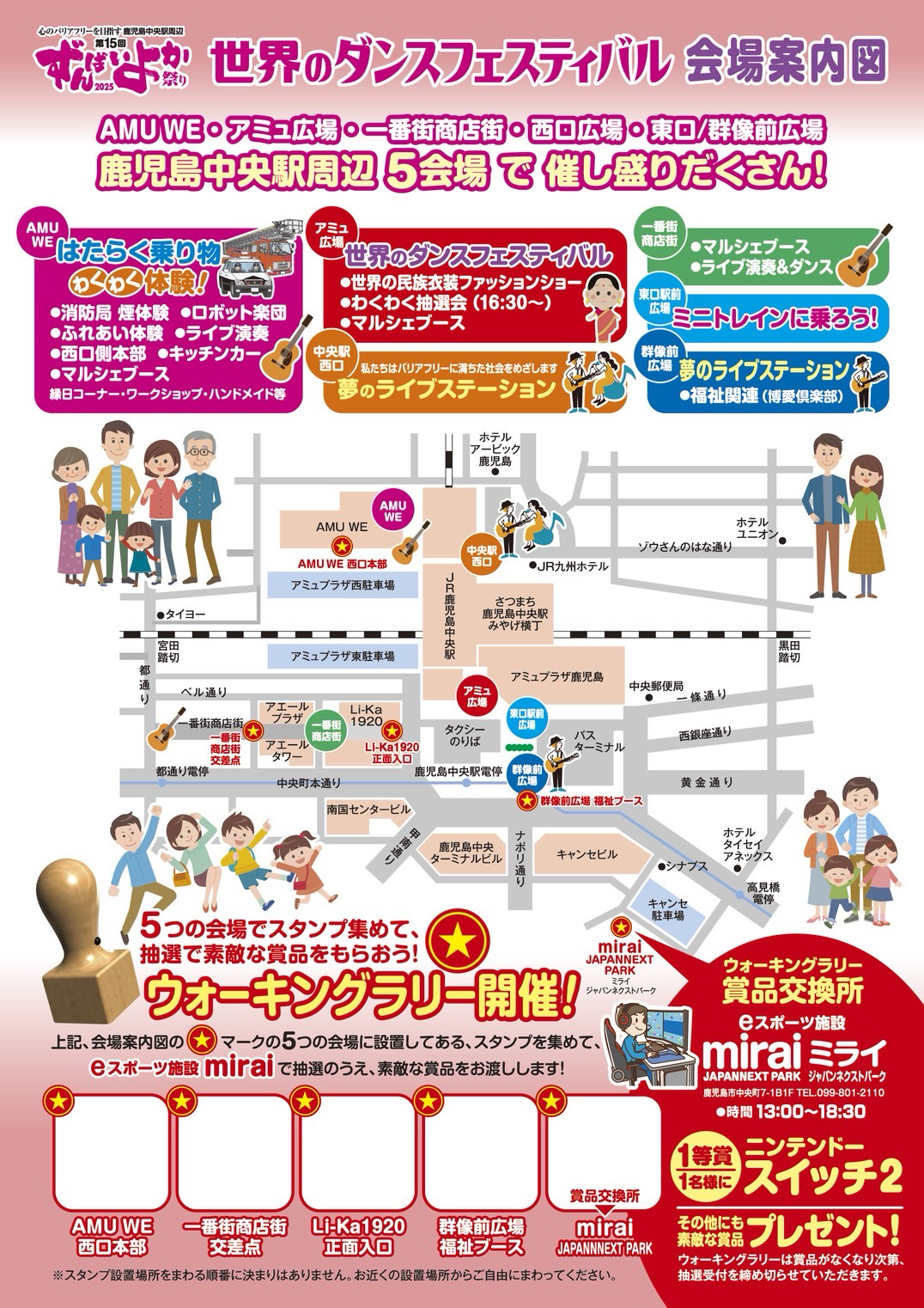 今年も鹿児島中央駅周辺で、盛りだくさんのイベントを開催します❗️みんな集まれ〜❗️ ◾️アミュ広場 : 世界のダンスフェスティバル💃マルシェ ◾️一番街商店街 : 音楽ライブ🎸マルシェ ◾️ライカ1920前 : マルシェ ◾️東口駅前広場 : ミニトレイン🚅福祉ブース 音楽ライブ🎵 ◾️西口広場 : 乗り物体験🚑音楽ライブ🎹キッチンカー ◾️mirai : eスポーツ体験 ❤️和牛が当たる「わくわくアプリ」でのスタンプラリー抽選会 ❤️会場内のウォーキングラリー抽選会では、なんとNintendoスイッチ2もあたっちゃうチャンス❗️
