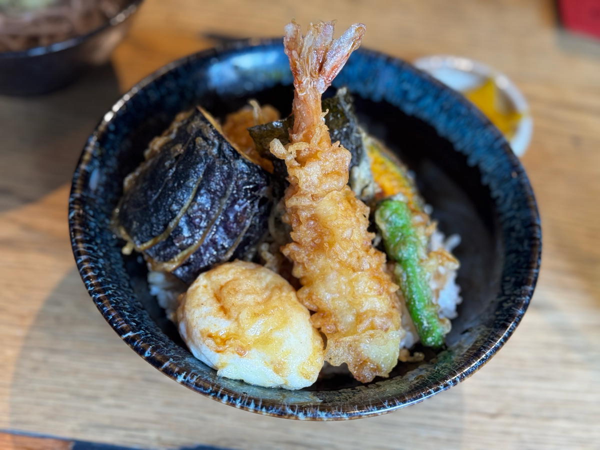 ランチで天丼頼みました。 衣もサクサクで重たくなく美味しかったです! 玉子の天ぷらも中が半熟で、ご飯に合います。 280円追加で味噌汁を蕎麦に変えました。 蕎麦も絶品でちょうど良い量が出てきますよ! 皆さん、ぜひお立ち寄りください!
