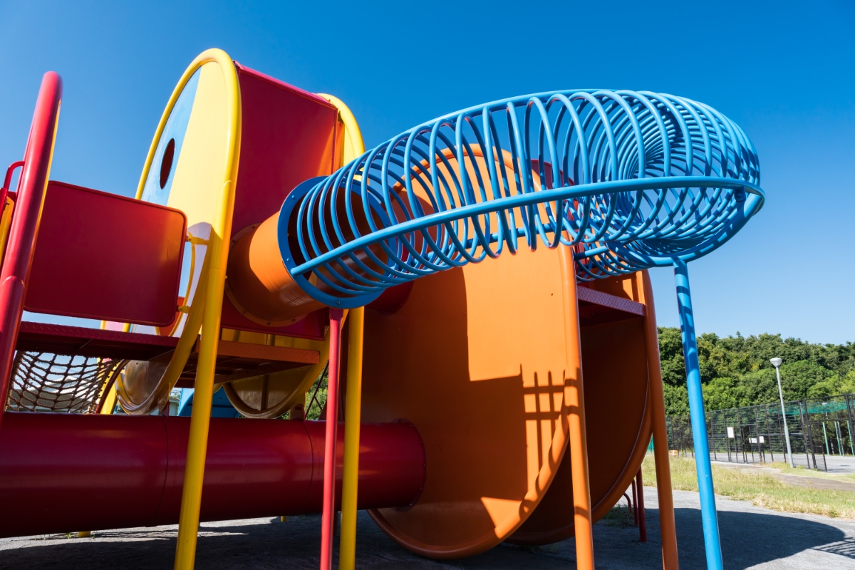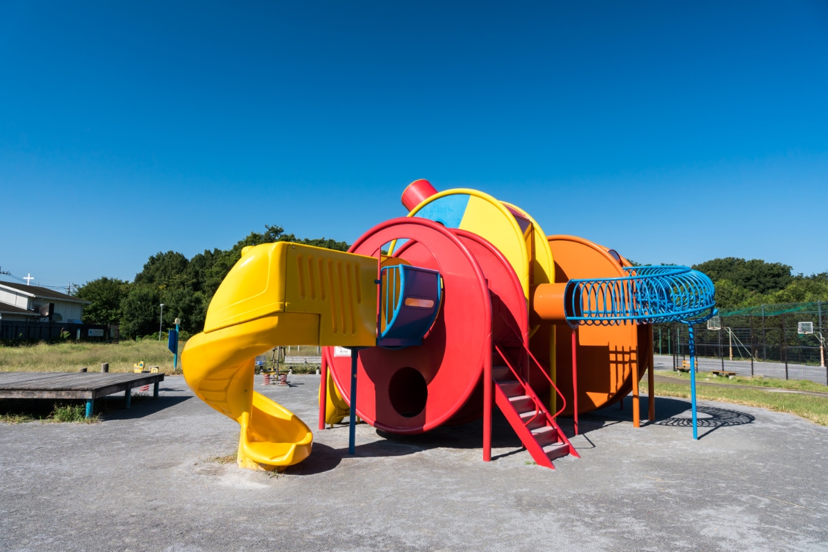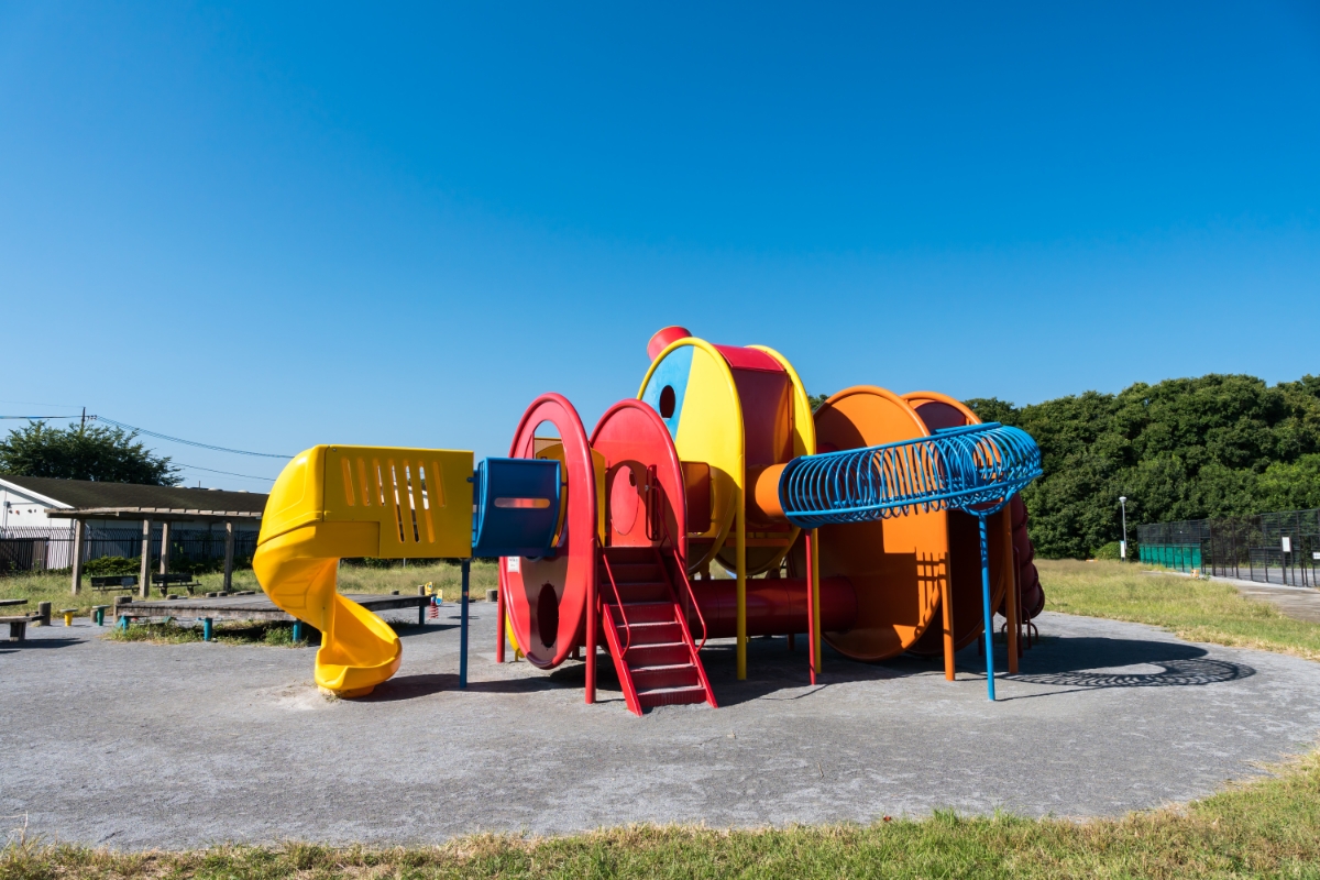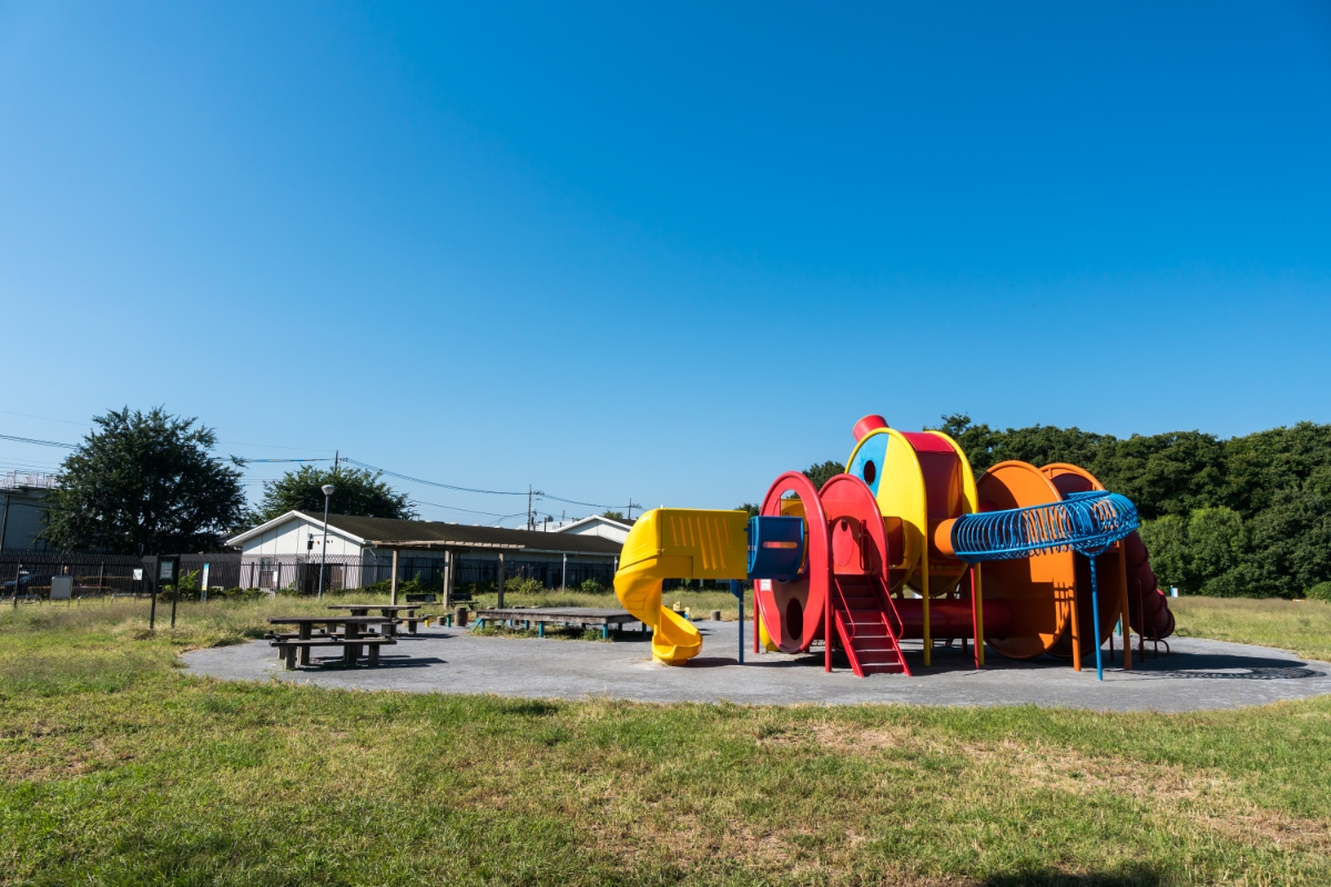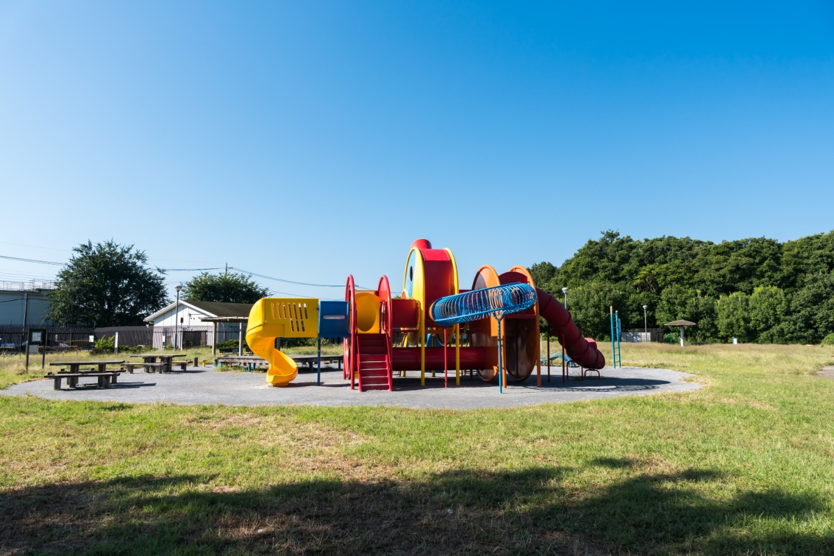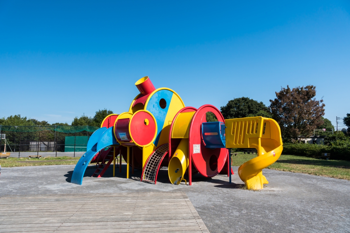 調布飛行場の南側にある西町公園です。 大きな遊具があって子供たちも大喜びで遊びますよ。