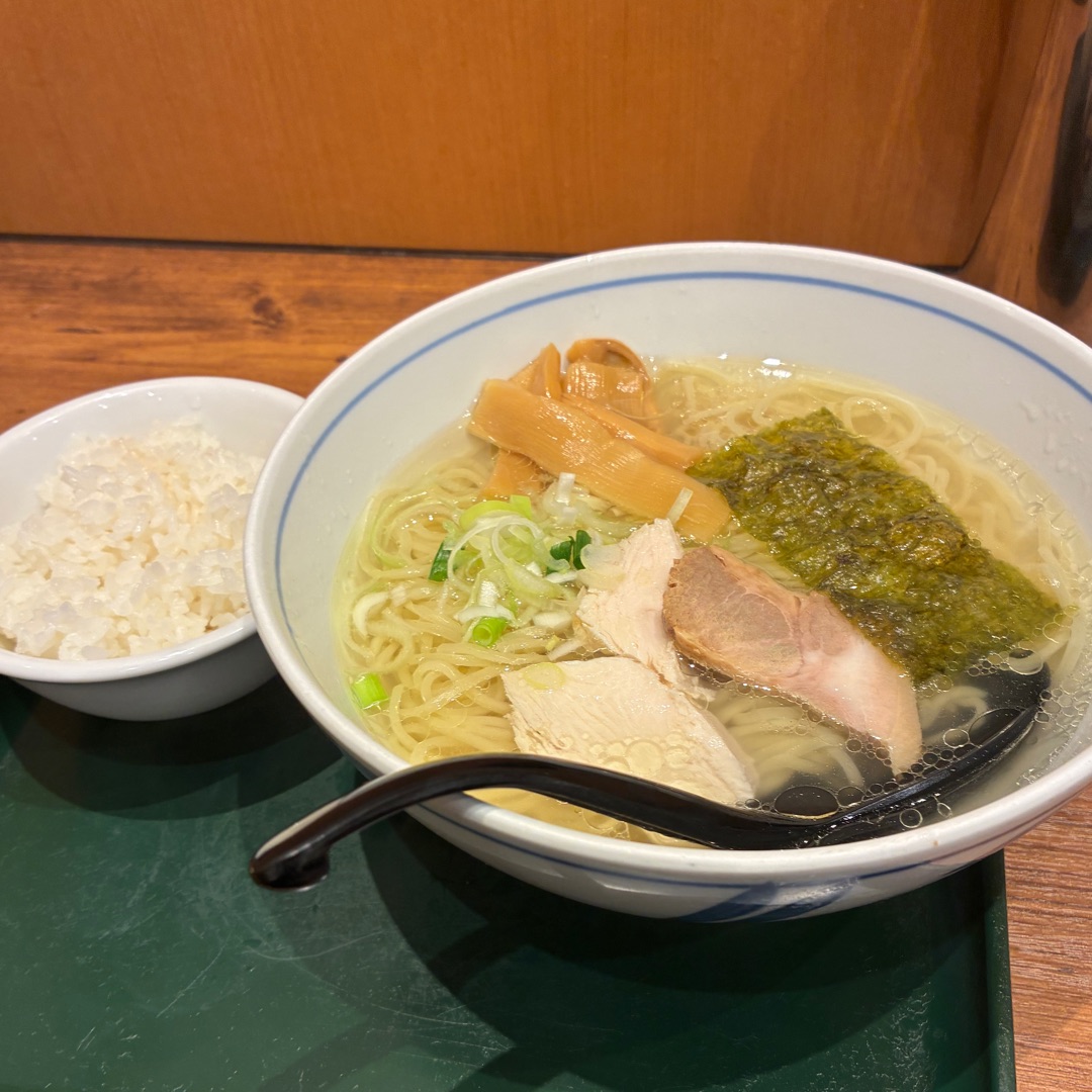 純鶏塩ラーメン690円と小ライス150円 さっぱりしていてこの値段なら十分満足!