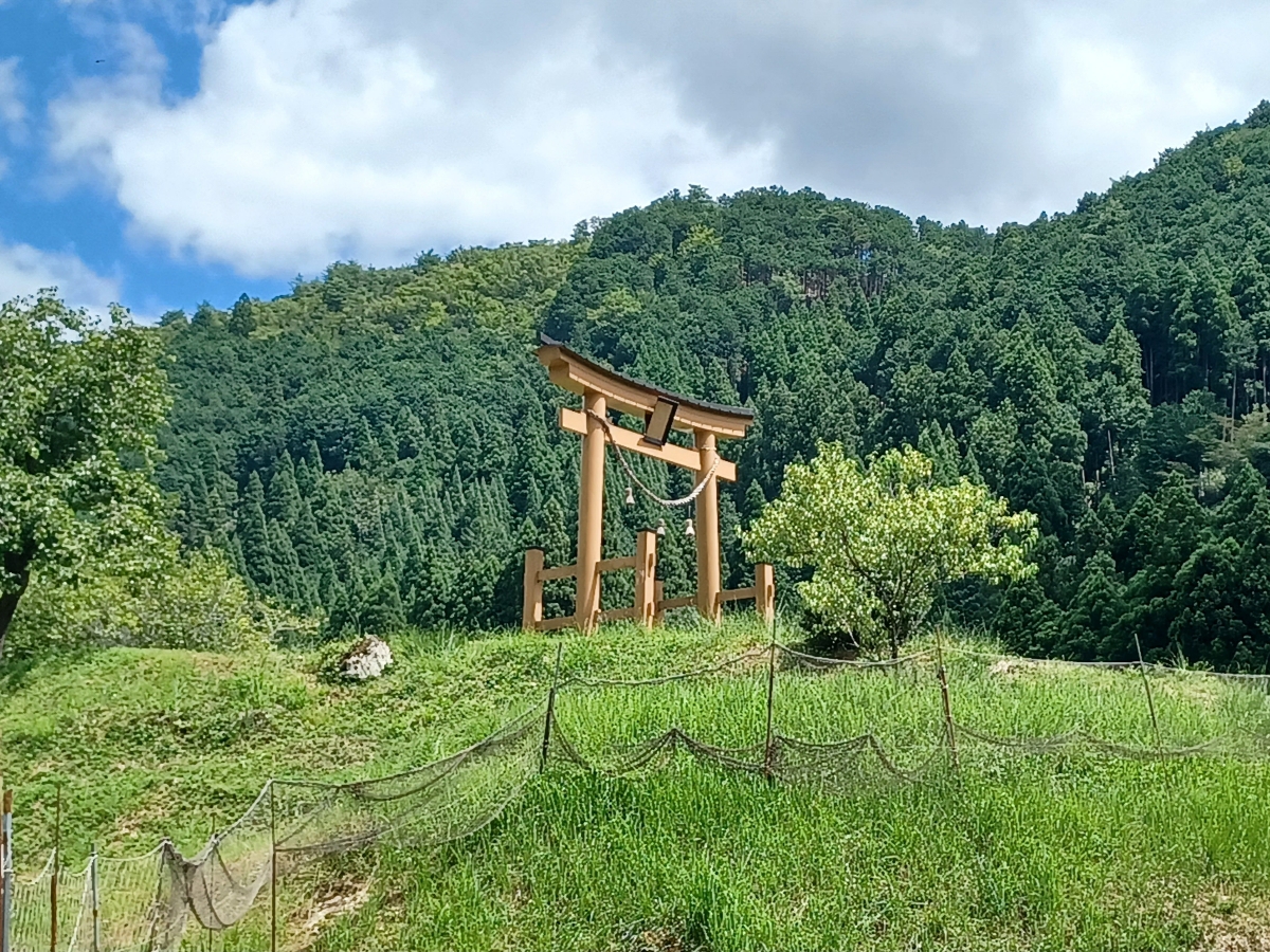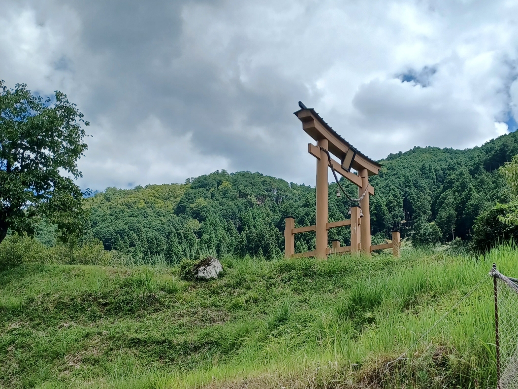『下石野八幡神社 鳥居』 智頭急行線の石井駅から、道路沿いに北上する道の途中に、ひょっこり鳥居が現れます。 ここは下石野八幡神社のお旅所で、神様が休憩される場所です。 本殿はもう少し北に上がった村の中にあります。 秋には彼岸花の群生がみられ、鳥居と共に美しい里の景色が見れるみたいですよ。 里山の風景と共に風情ある写真が撮れそうですね。
