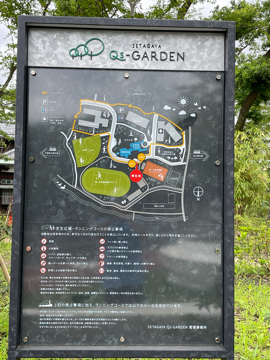 仙川駅から徒歩10分にあるqsgardenです 1周900メートルのランニングコースがある他、テニスコート、野球場、カフェ、公園、広場などがあります