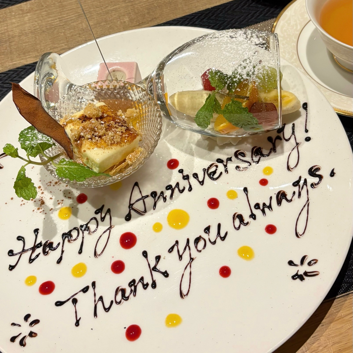 お祝いごとや女子会にオススメしたいです! お料理が全て美味しく、スタッフさんも親切で、居心地の良い店でした。 コースは8品ほど。前菜、メイン料理は3種類から選ぶことができます。 好きな客席スペースは広く余裕があって、スタッフさんの気配りも素敵で、楽しい時間を過ごせました。 食後のドリンクは、コーヒー紅茶だけでなく沢山の種類のフレバーティから選ぶことができました また必ず伺いたい、オススメのお店です✨️