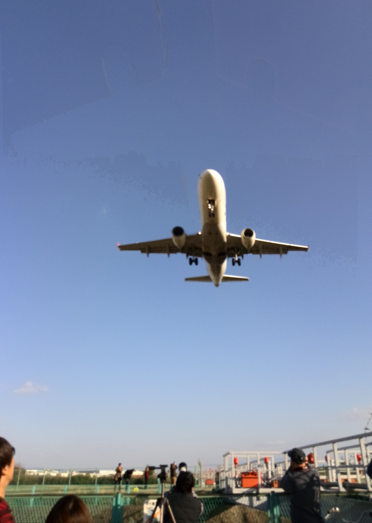 『千里川土手』 伊丹空港から離発着する飛行機が、間近に見れるスポットです