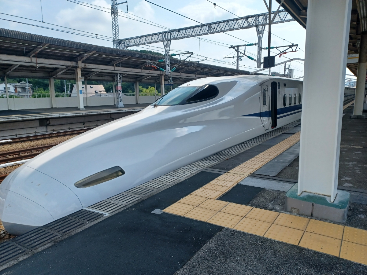 『JR相生駅』 新幹線の駅は兵庫で最西端に位置します。 他の新幹線の待ち合わせ駅です。 駅のホームから南側を眺めると、遠くに造船所が見えます。 在来線は山陽本線と、瀬戸内海沿いを走る赤穂線があります。 この地域は牡蠣の養殖で有名です。