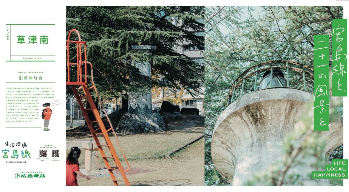 生活沿線 宮島線 広島電鉄の宮島線全駅がポスター展会場に。 広電西広島駅から広電宮島口駅までの21駅を会場に、1駅1枚、全21種類の「この駅で出会える風景」ポスターを期間限定展示中です。 いざ、各駅を巡る展覧会へお越しください。