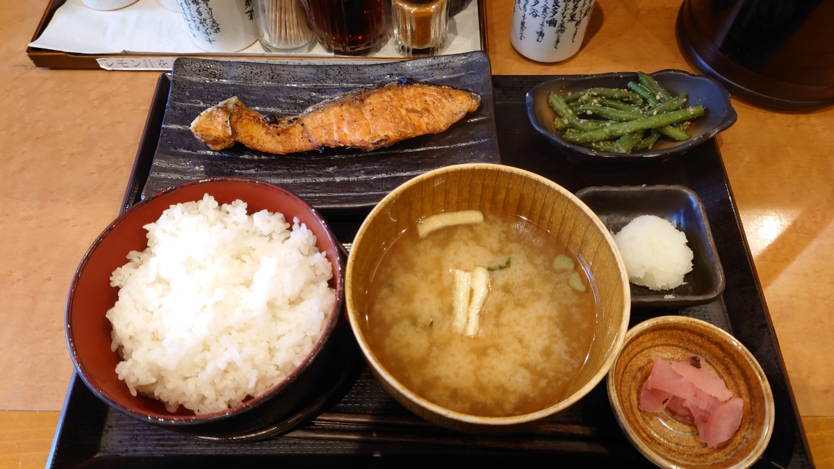 大須観音駅の2番出口を出てすぐのところにある、しんぱち食堂でお昼ごはんを食べました。 私が頼んだのは、厚切り銀鮭塩焼き定食です。炭火焼きの良い匂いも相まって、ご飯がすすむ! チェーン店ではありますが、炭火焼きの魚がリーズナブルな値段で食べられる定食屋さんは有難いですね。土曜日のお昼は多くの人で賑わっていました。